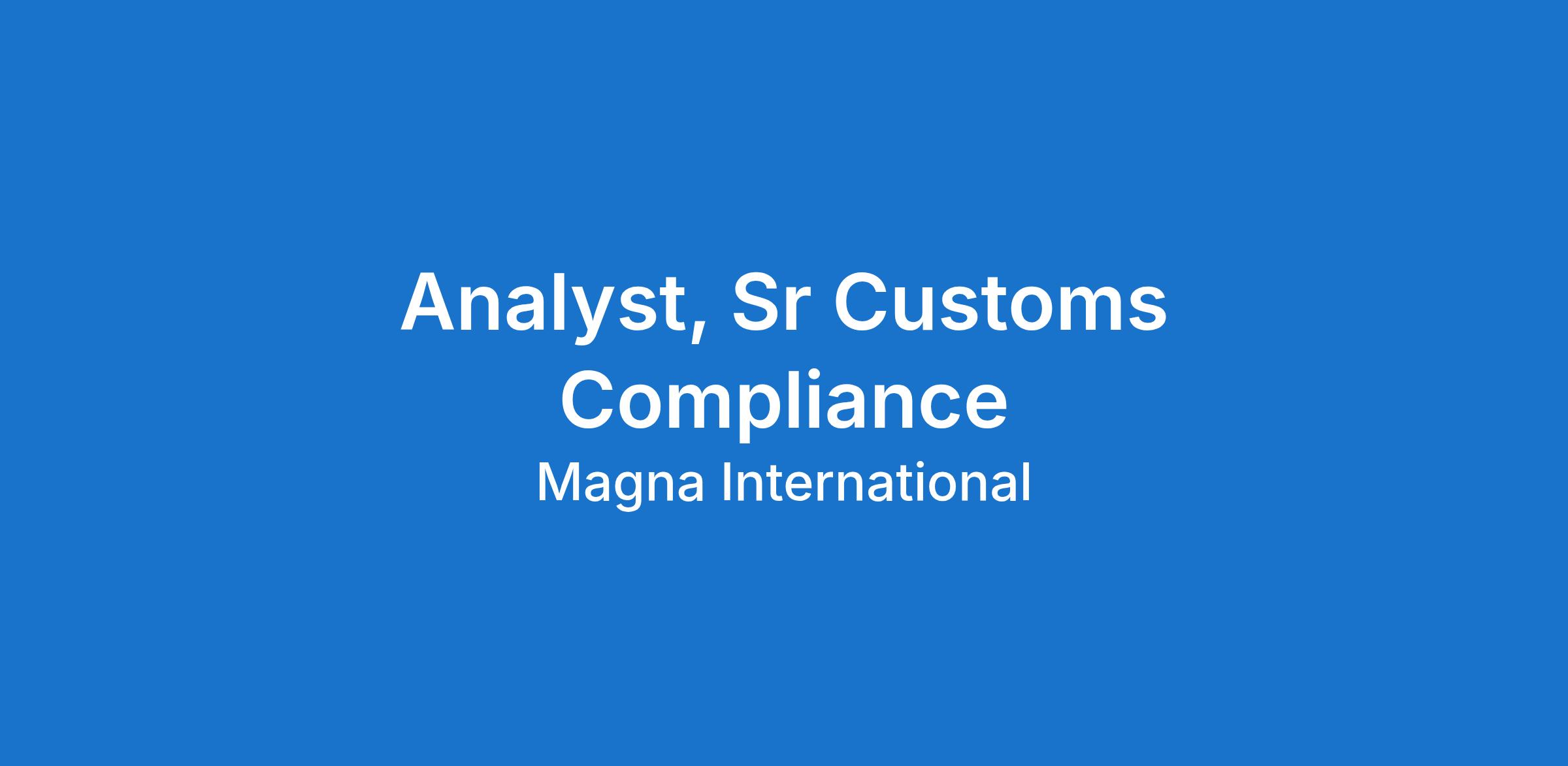 The Customs Compliance Analyst will have responsibility for various Customs Compliance tasks to support the facilities assisted by the MPT Customs Team. This position will be the Subject Matter Expert on