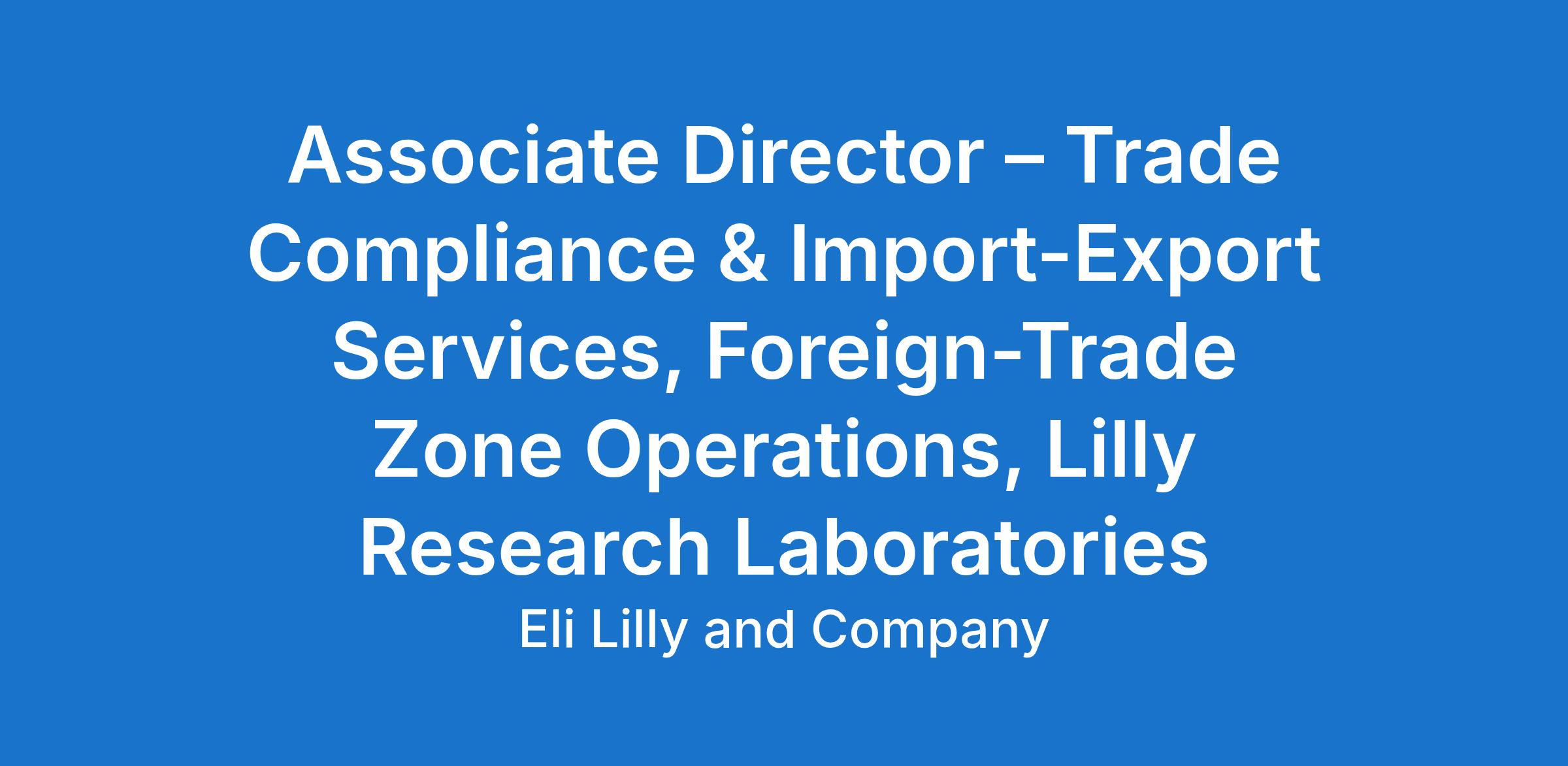 The Associate Director, TCIES & Foreign-Trade Zone (FTZ) Operations, LRL reports to the Senior Director – LRL Trade Compliance and helps develop and execute strategies that enable compliant, efficient, and scalable global clinical supply operations. The role supports expanded TCIES scope, including activation of the Medicine Foundry Foreign-Trade Zone, growth in Greenwood Innovation Center – Global Supply Logistics Solutions (GSLS) trade compliance needs, integration of trade compliance into the Enterprise Control Tower, and scalable support for Lilly acquisitions.