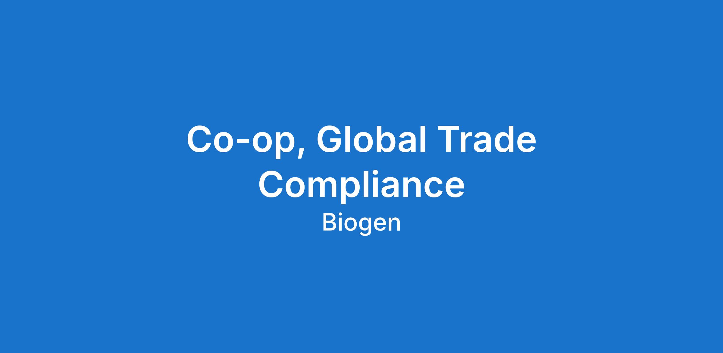 Global Trade Compliance is a shared responsibility across all Biogen, and in this role, you will be able to create connections, learn and collaborate with many employees across Biogen’s various functions.