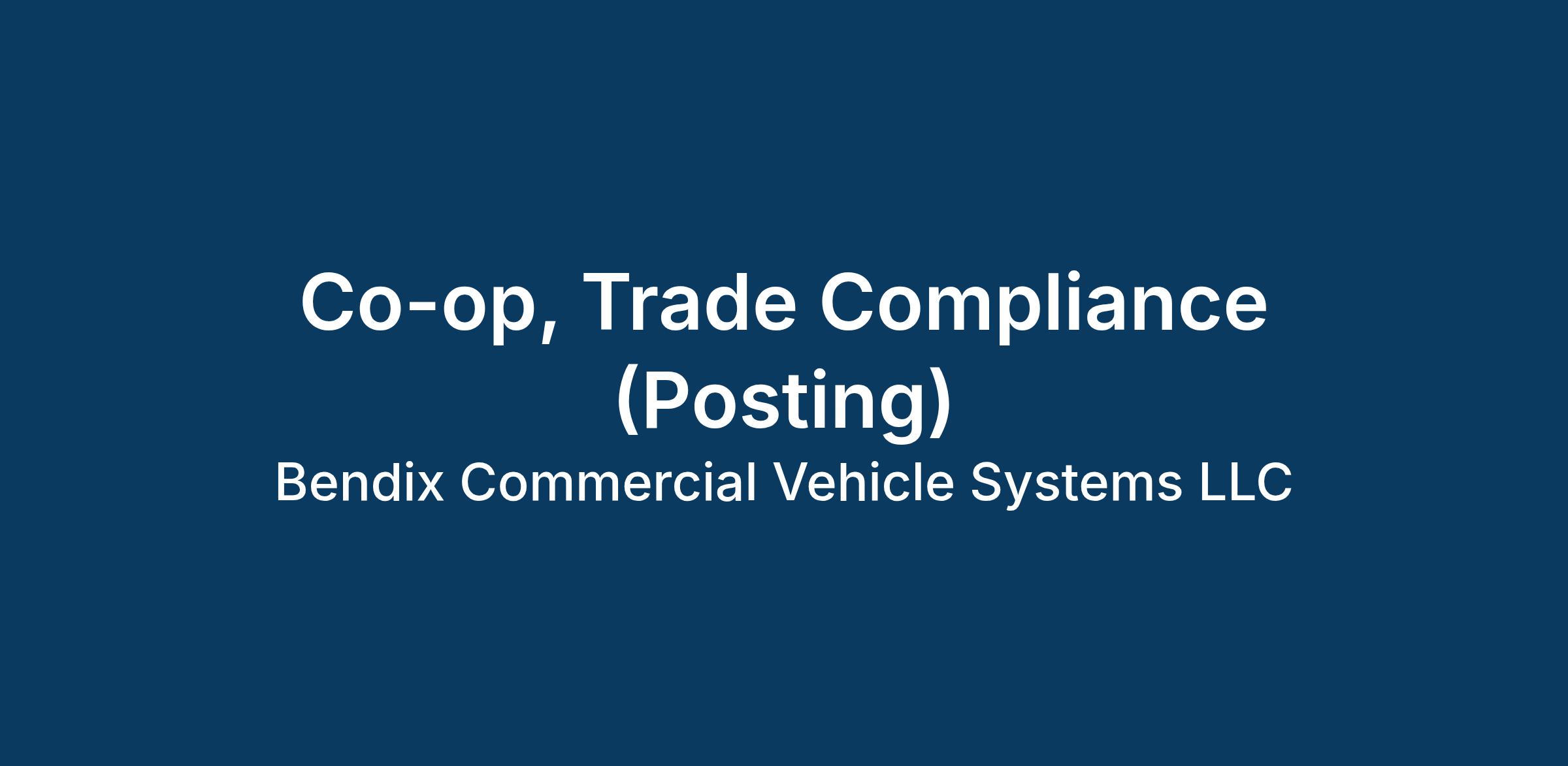 SUPPLY CHAIN – TRADE COMPLIANCE CO-OP High-potential Supply Chain graduates can pursue full-time employment in our exciting Supply Chain Development Program (SCDP) – a three-year rotational experience offering a dynamic mix of high-impact assignments, diverse exposure to cutting-edge technologies, and mentoring from Bendix Supply Chain leaders. The SCDP offers you the chance to contribute to our growth as a world-class supply chain organization. You will graduate from this program as a well-rounded supply chain professional with the confidence and ability to take on challenging roles within our organization.