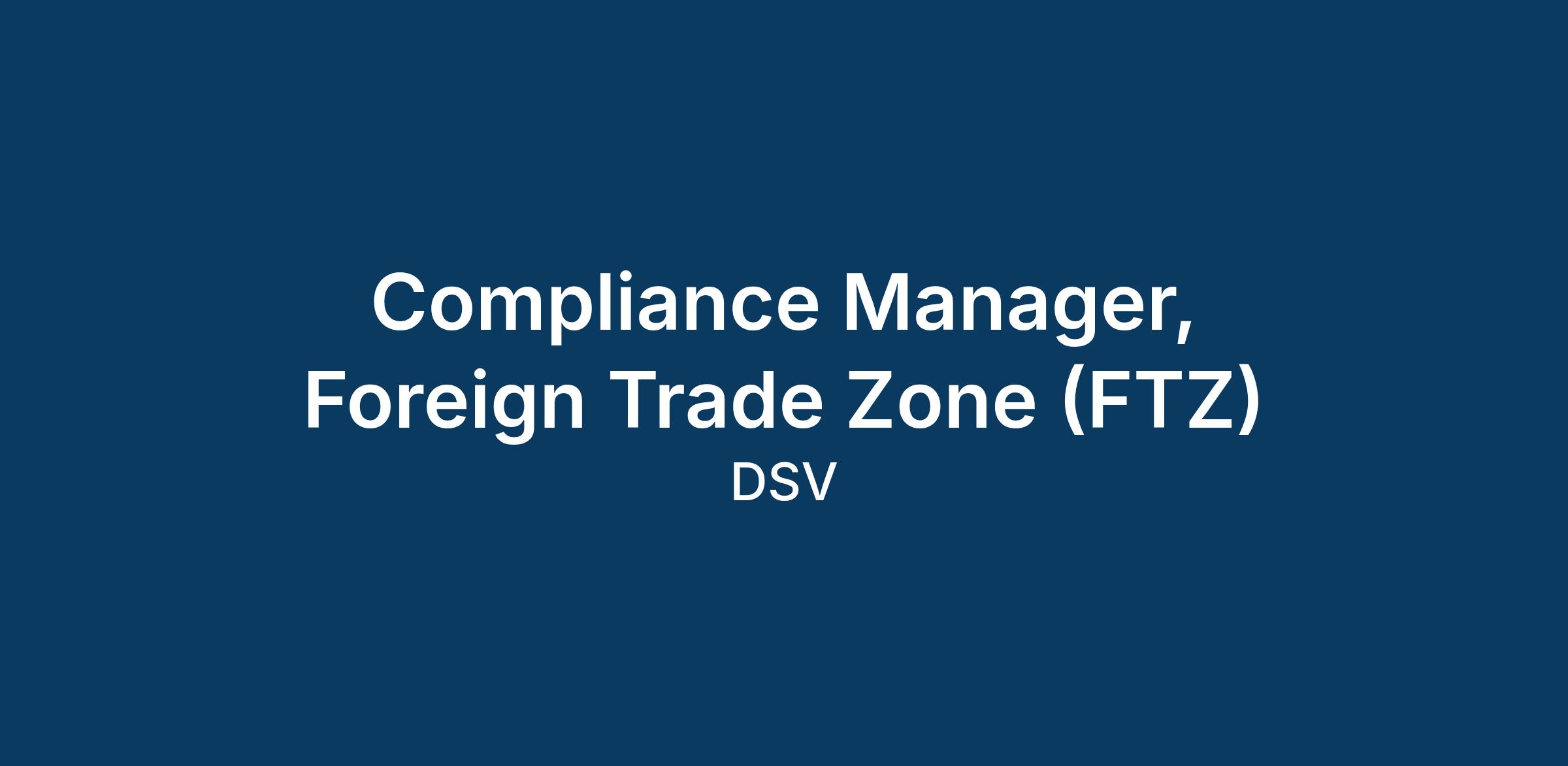 Job Posting Title: Compliance Manager, Foreign Trade Zone (FTZ)