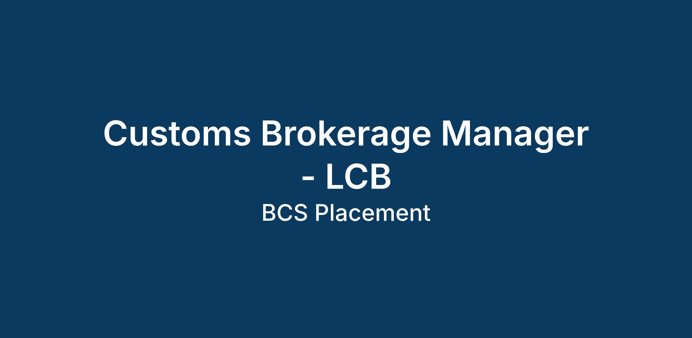 Customs Brokerage Manager - LCB