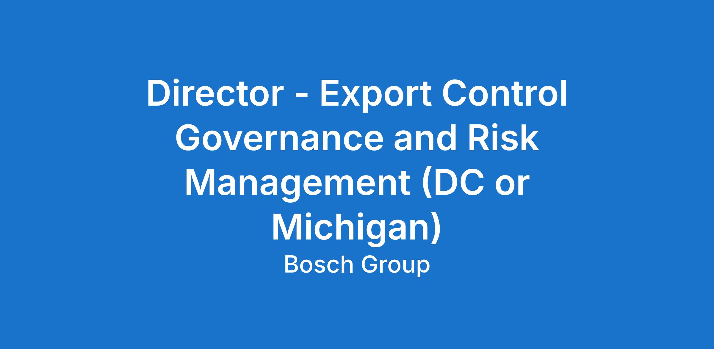 As Director - Export Control Governance and Risk Management you will provide authoritative guidance on national and international regulations, including the ITAR and EAR, ensuring Bosch's compliance with them. As prominent SME for Export Controls in the US and part of our global Export Control and Sanctions team you will further develop global standards and guidelines in U.S. export controls law.