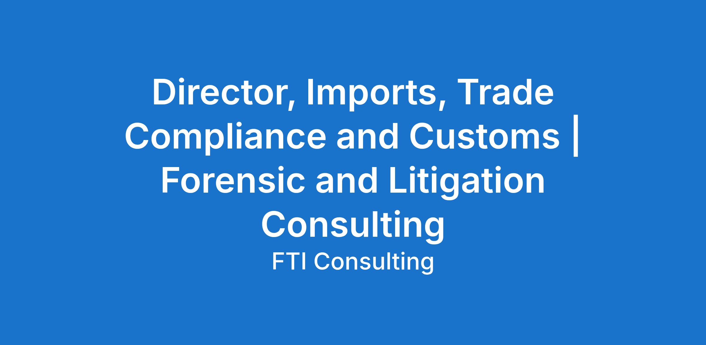 FTI seeks experienced trade compliance professionals with 6+ years of expertise to manage multiple client engagements and lead teams delivering global trade compliance solutions. Directors oversee investigations, design compliance programs, lead audits, and interact directly with clients on complex issues including customs, tariff mitigation strategies, FTZs, and sourcing regulations such as Buy America/Buy American. This role also supports business development and thought leadership initiatives.