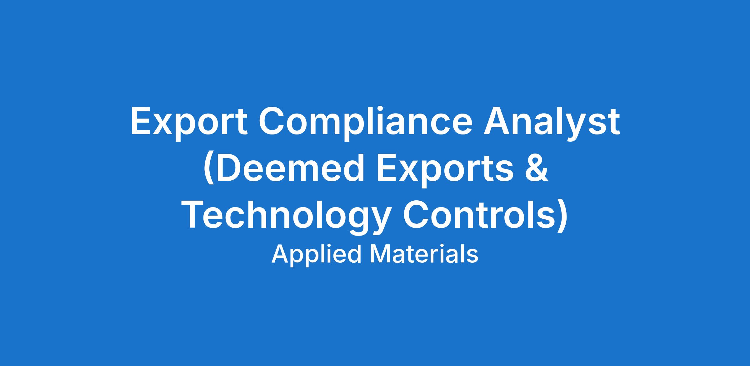 The Export Compliance Analyst supports Applied Materialâs export compliance program with a primary focus on deemed export licensing and technology controls. You will help prepare and submit deemed export license applications, coordinate cross-functionally to collect required technical and HR data, administer and improve Technology Control Plans (TCPs) to protect controlled technology and comply with U.S. export regulations.