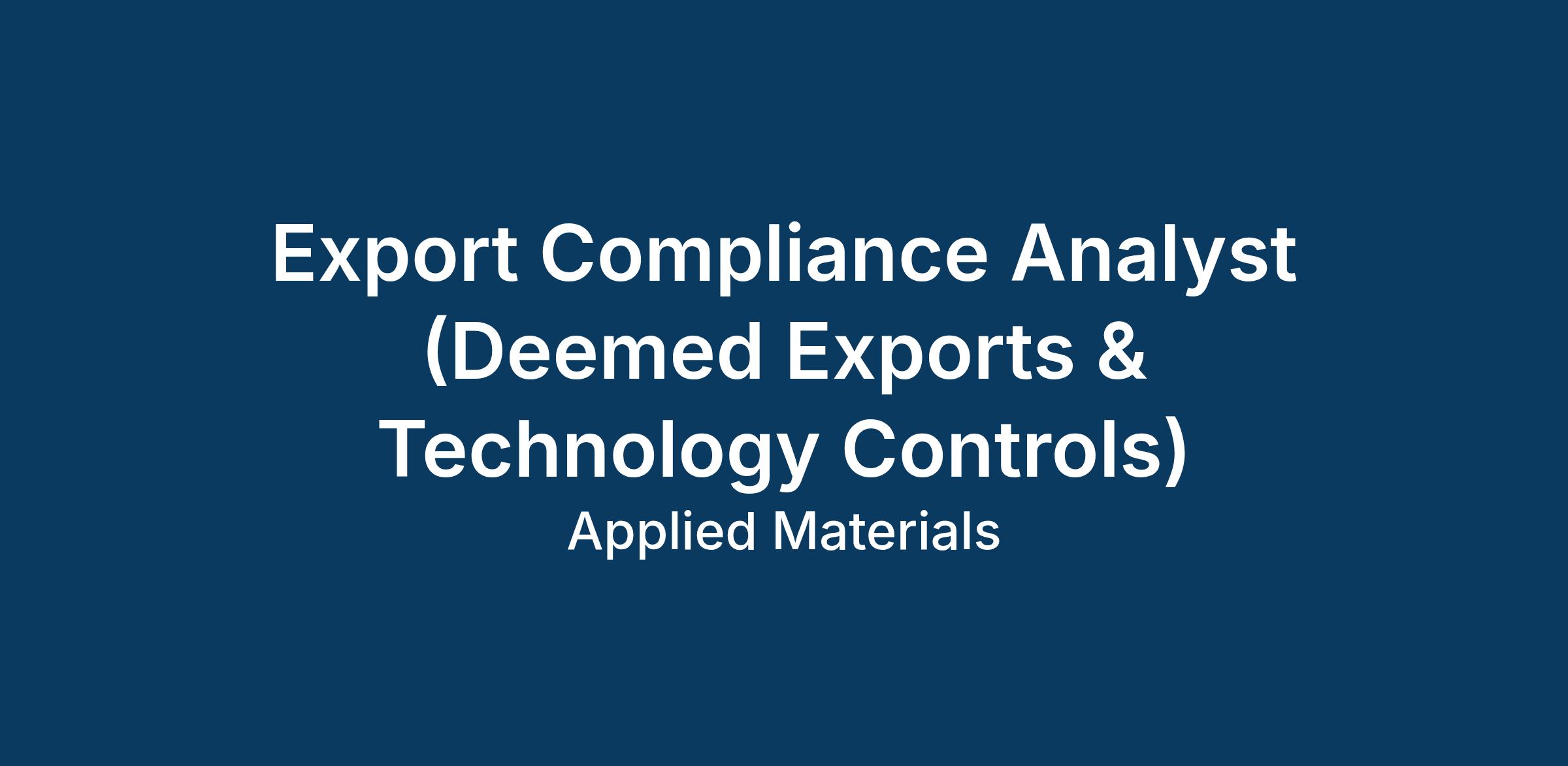 Export Compliance Analyst (Deemed Exports & Technology Controls)