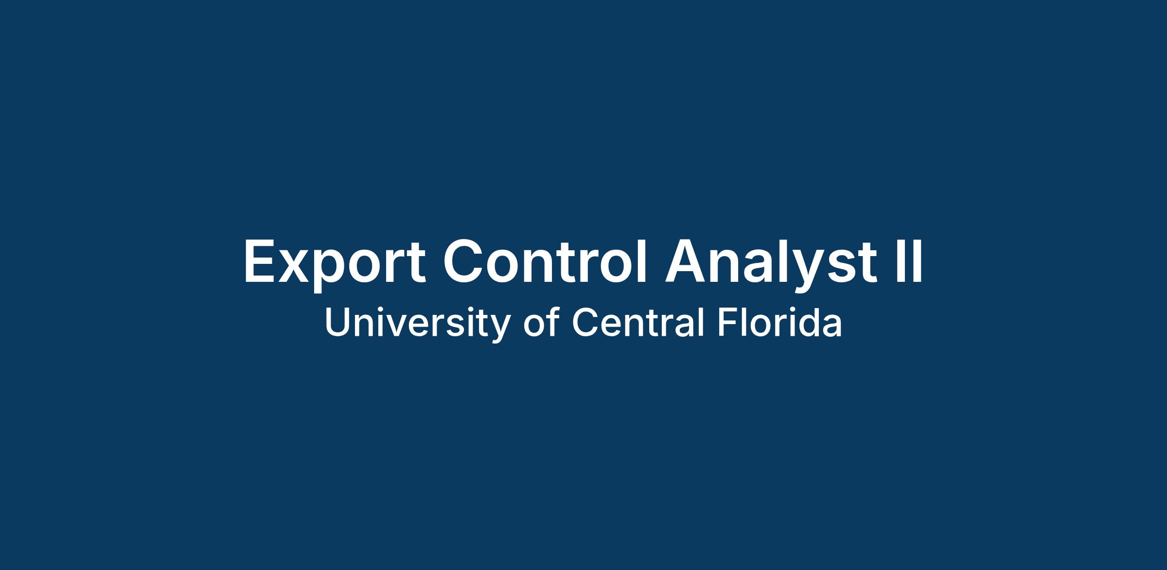 The Export Control Analyst II is a critical role within UCF's Office of International Collaboration and Export Control (OICEC) — sitting at the intersection of research, compliance, and global engagement at one of the nation's premier R1 universities. In this position, you'll serve as a trusted subject matter expert and advisor to faculty, researchers, students, and administration, helping navigate the complex federal regulations that keep UCF's research enterprise moving forward. From EAR/ITAR classification and restricted party screening to research agreements and foreign shipment review, you'll touch every dimension of export control compliance. It's a unique opportunity to do meaningful, high-impact work that matters at a national scale.