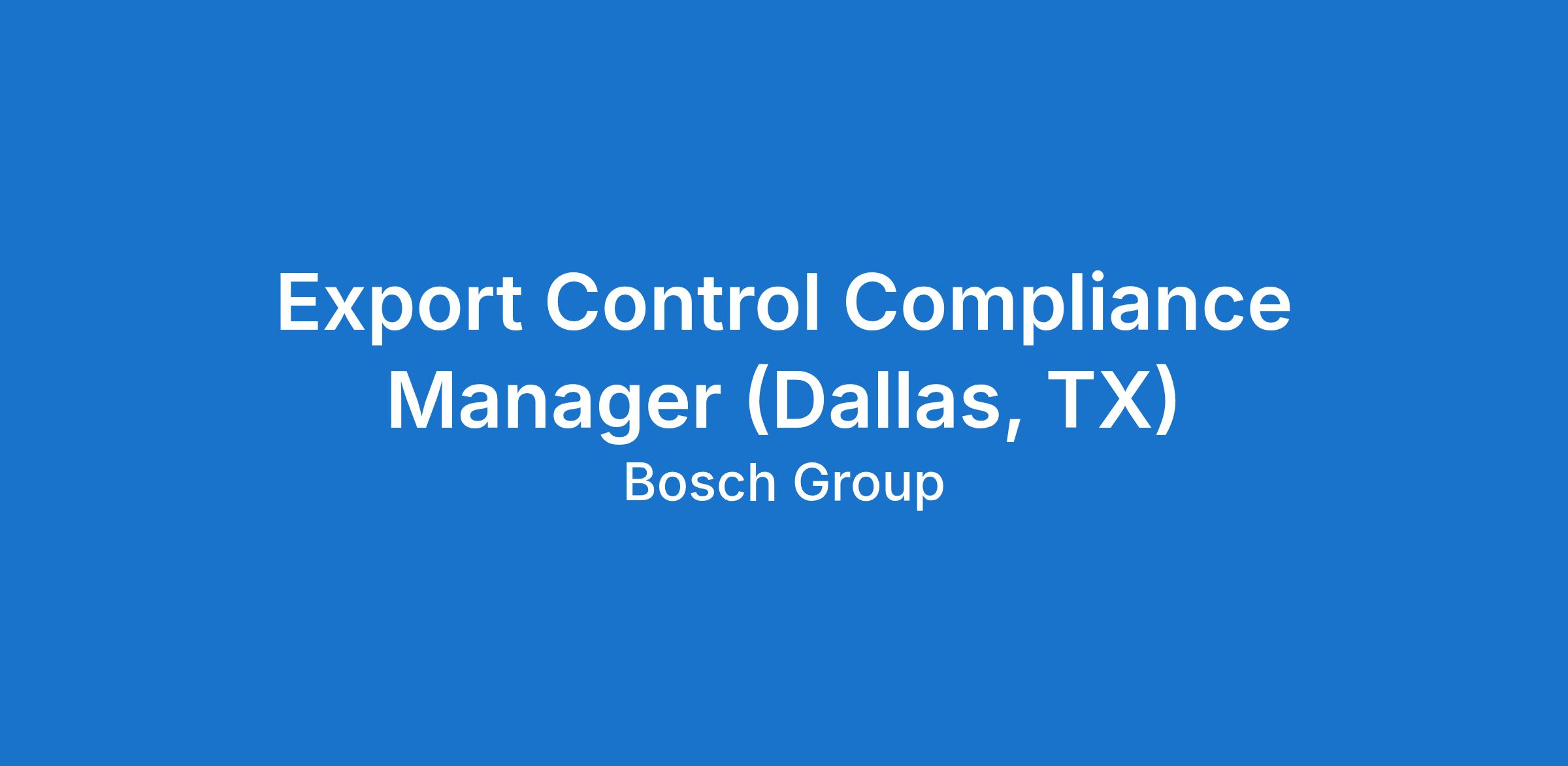 As part of the global Export Control Officer team, you will be responsible for Home Comfort and potentially other Bosch entities in the US.