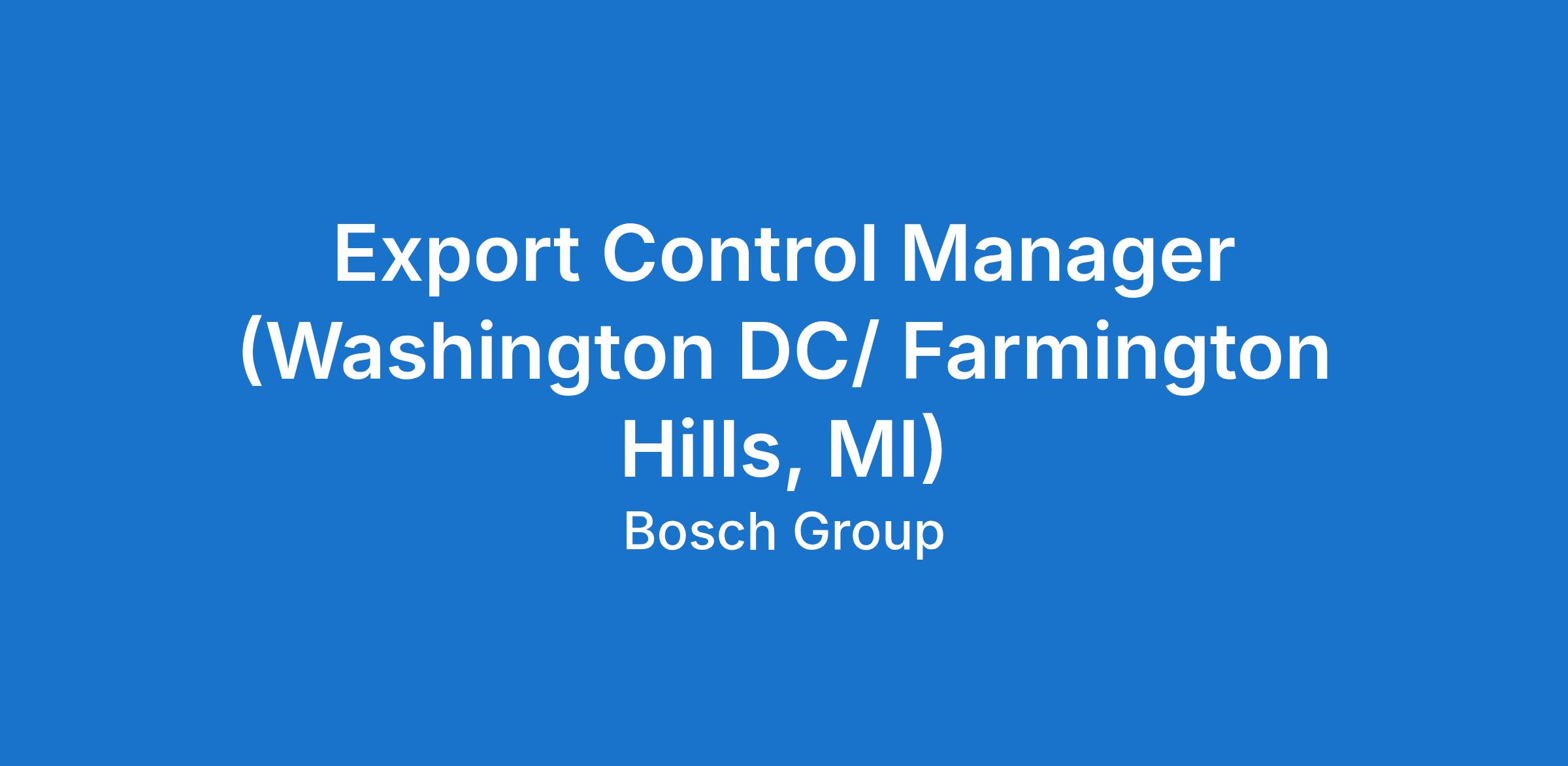 As Export Control Manager you will provide authoritative guidance on national and international regulations, including the ITAR and EAR, ensuring Bosch's compliance with them. As part of our global Export Control team, you will further develop global standards and guidelines in U.S. export controls law in strong collaboration with your international colleagues.