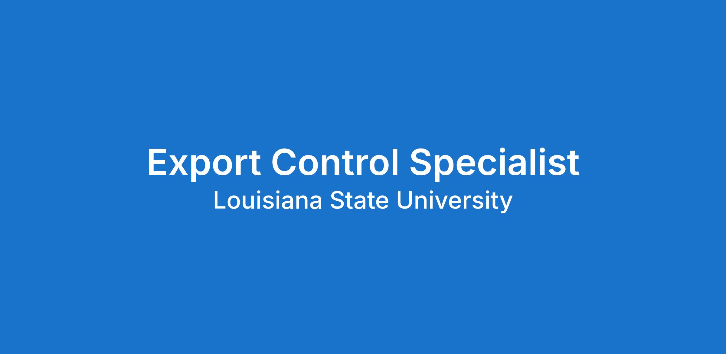 The Export Control Specialist supports Louisiana State University’s mission to foster a culture of compliance and advance research and innovation, while ensuring compliance with federal export control regulations. This position is responsible for the administration, coordination, and management of activities related to export control laws and regulations, including the Export Administration Regulations (EAR), International Traffic in Arms Regulations (ITAR), and the Office of Foreign Assets Control (OFAC) sanctions. The Export Control Specialist will develop and implement policies, assess research and collaborations for compliance risk, and advise faculty, staff, and administrators on complex export control issues to enable compliant global research engagement.