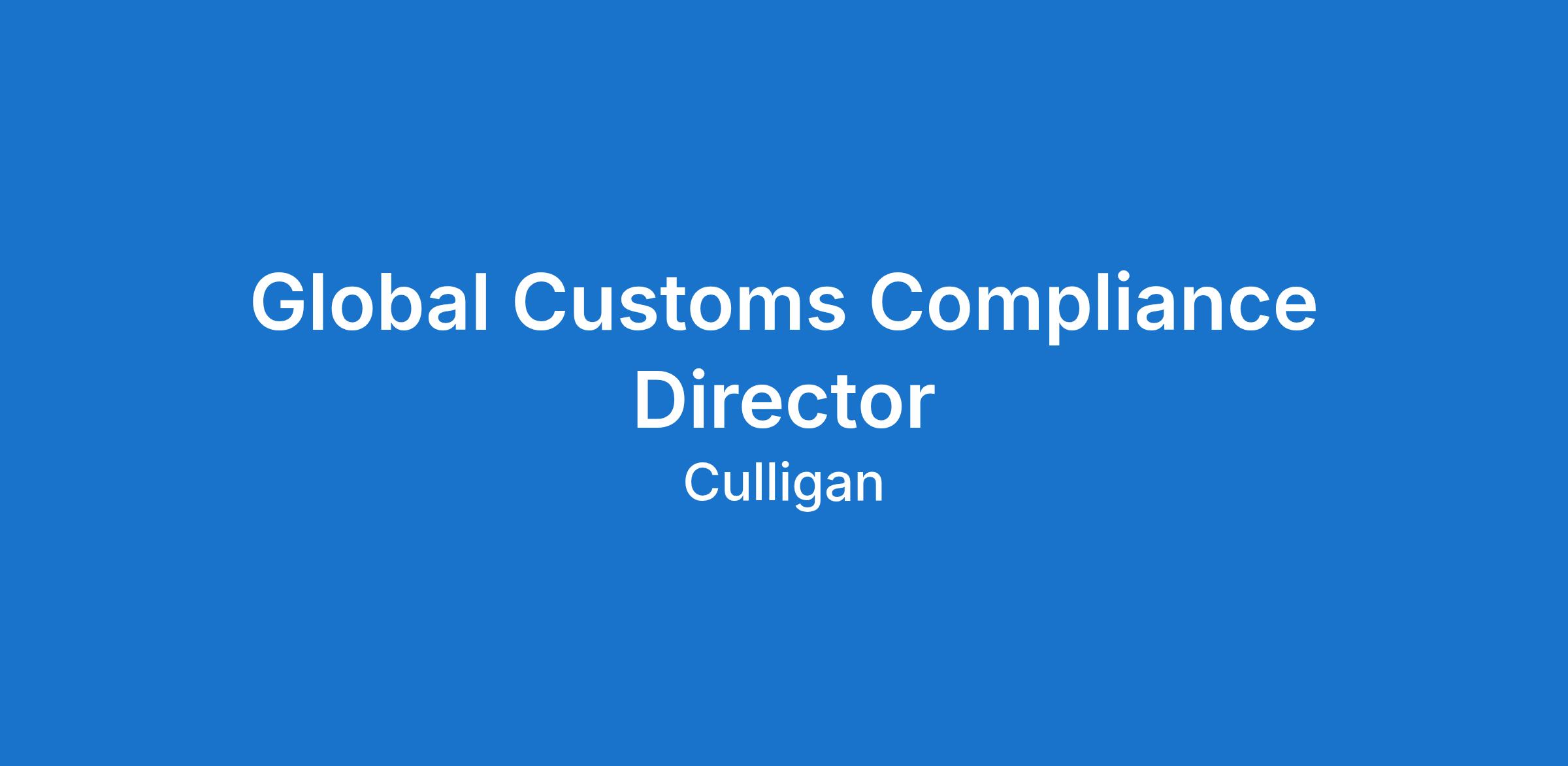 Culligan is looking for a Global Customs Compliance Director. This individual is responsible for leading and maintaining a comprehensive global trade compliance program to ensure adherence to all applicable U.S. and international import and export regulations. This role serves as the subject matter expert for customs and trade compliance, mitigating risk while enabling efficient, compliant global trade operations in support of Culligan’s business objectives.