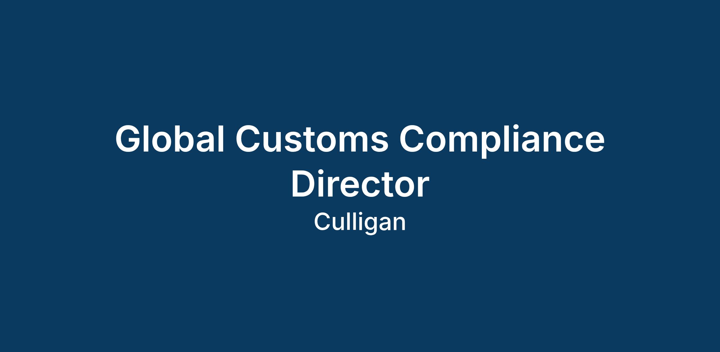 Culligan is looking for a Global Customs Compliance Director. This individual is responsible for leading and maintaining a comprehensive global trade compliance program to ensure adherence to all applicable U.S. and international import and export regulations. This role serves as the subject matter expert for customs and trade compliance, mitigating risk while enabling efficient, compliant global trade operations in support of Culligan’s business objectives.