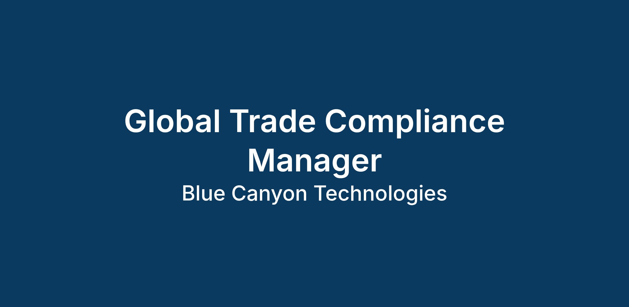 Position Purpose: The Global Trade Manager leads all Global Trade (“GT”) activities at Blue Canyon Technologies and is responsible for manage export/import licensing, GT compliance and jurisdiction/classification actions. They will be empowered as the primary GT facilitator at BCT, responsible for overseeing key global trade compliance infrastructure elements including but not limited to providing cross-functional support, processes/procedures, automated solutions/tools, training, licensing strategy, program support, and metrics. This person will collaborate closely with a broad base of functional groups across the organization and champion compliant business practices in the intricate, dynamic landscape of export and import regulations. This position operates in a high-energy, fast-paced environment. A successful individual in this role will prioritize fostering strong relationships with internal and external customers and be skilled at collaborating with multiple business functions to support BCT’s business needs.