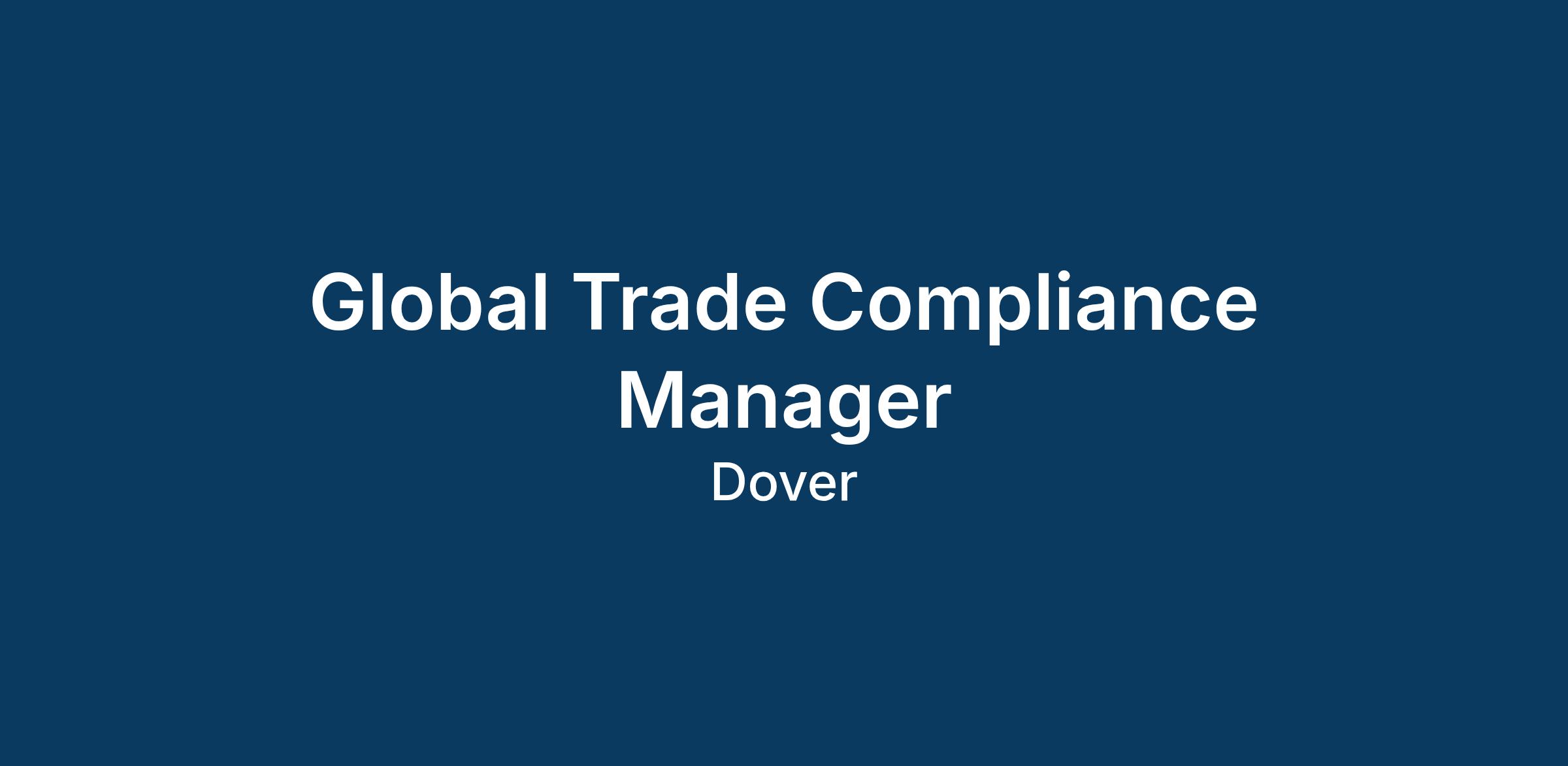 The Global Trade Compliance Manager will focus on U.S. customs and international trade compliance matters. This position reports to the Senior Associate Counsel, Global Regulatory Affairs within the Dover Law Department. The successful candidate will coordinate closely with trade and compliance personnel at Dover’s Operating Companies (OpCos), and a proven ability to work independently and meet deadlines is essential.