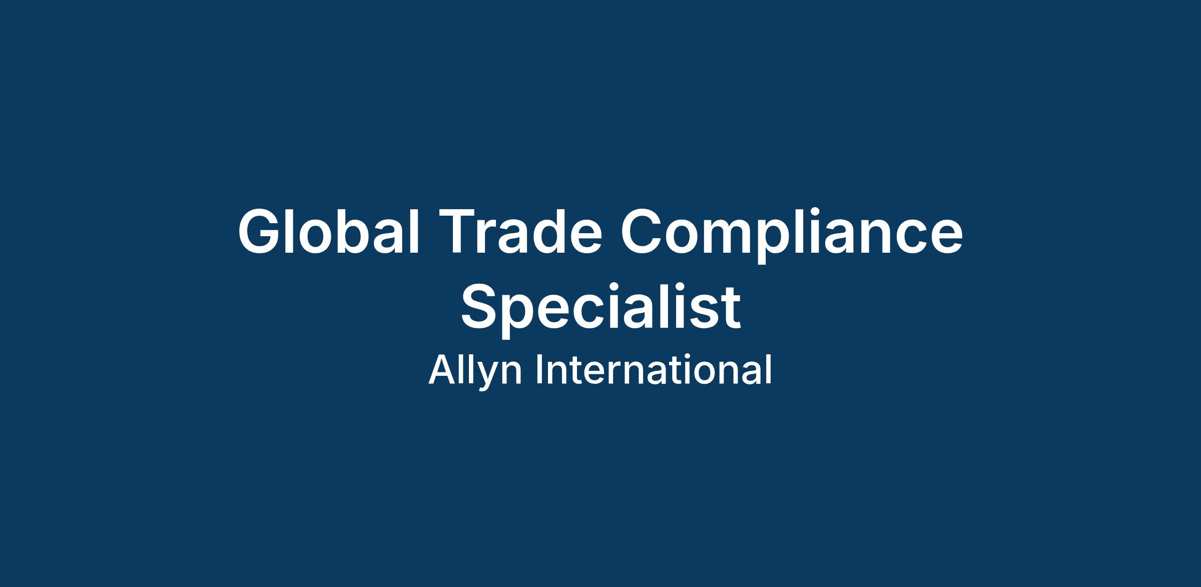 Allyn International is in search of an Entry-Level Global Trade Compliance Specialist to grow within our Trade Department in our Fort Myers, FL location. Allyn is a privately held professional services firm established in 1992. We provide high-quality, customer-centric services and solutions for the global marketplace. Our core products include transportation management, logistics sourcing, freight forwarding, supply chain consulting, tax management, and trade compliance operational support and consulting.
