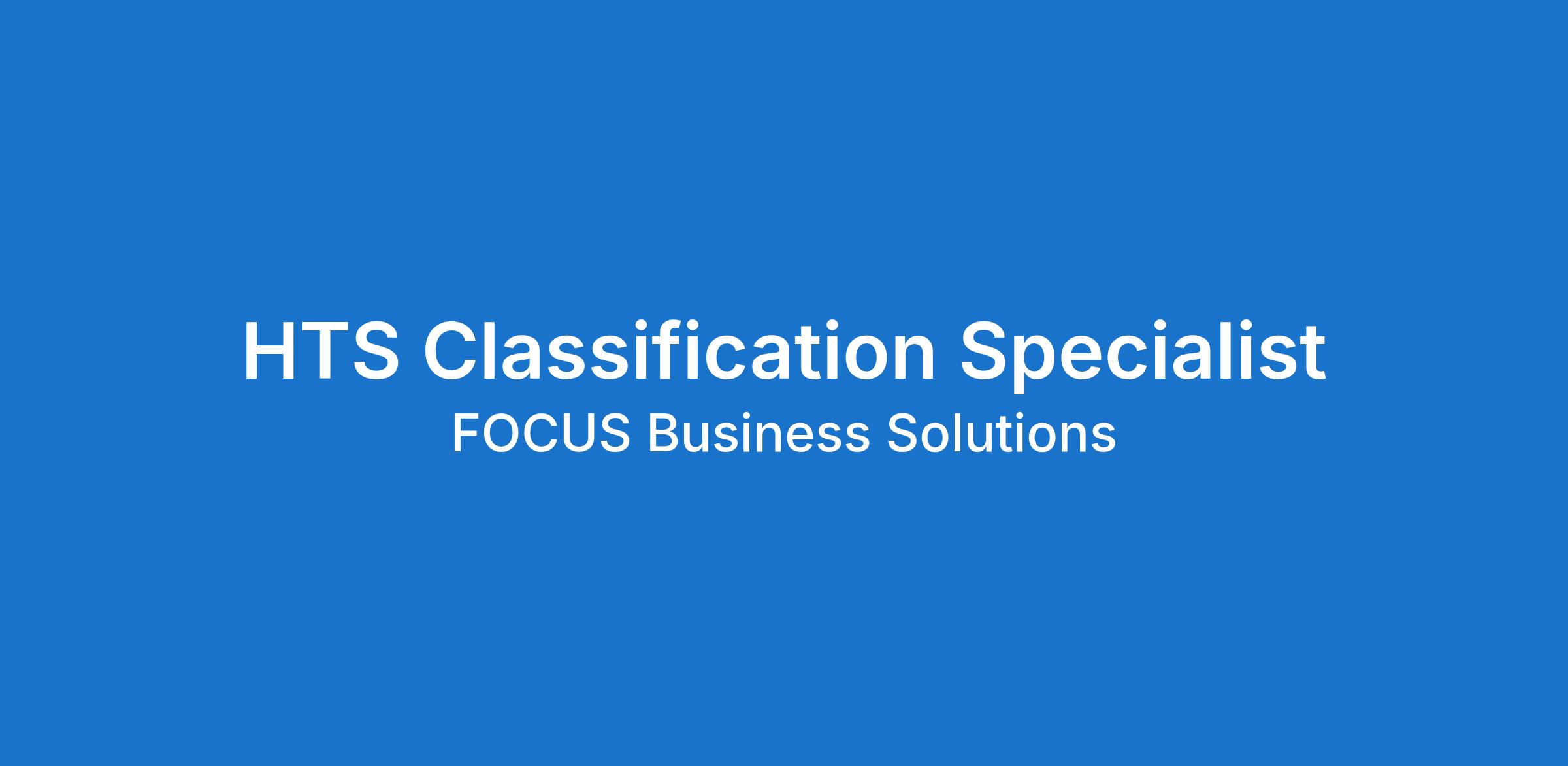 FOCUS Business Solutions, Inc. is looking for trade compliance professionals with 1-5 years experience classifying a wide variety of commodities. Must be able to demonstrate:
