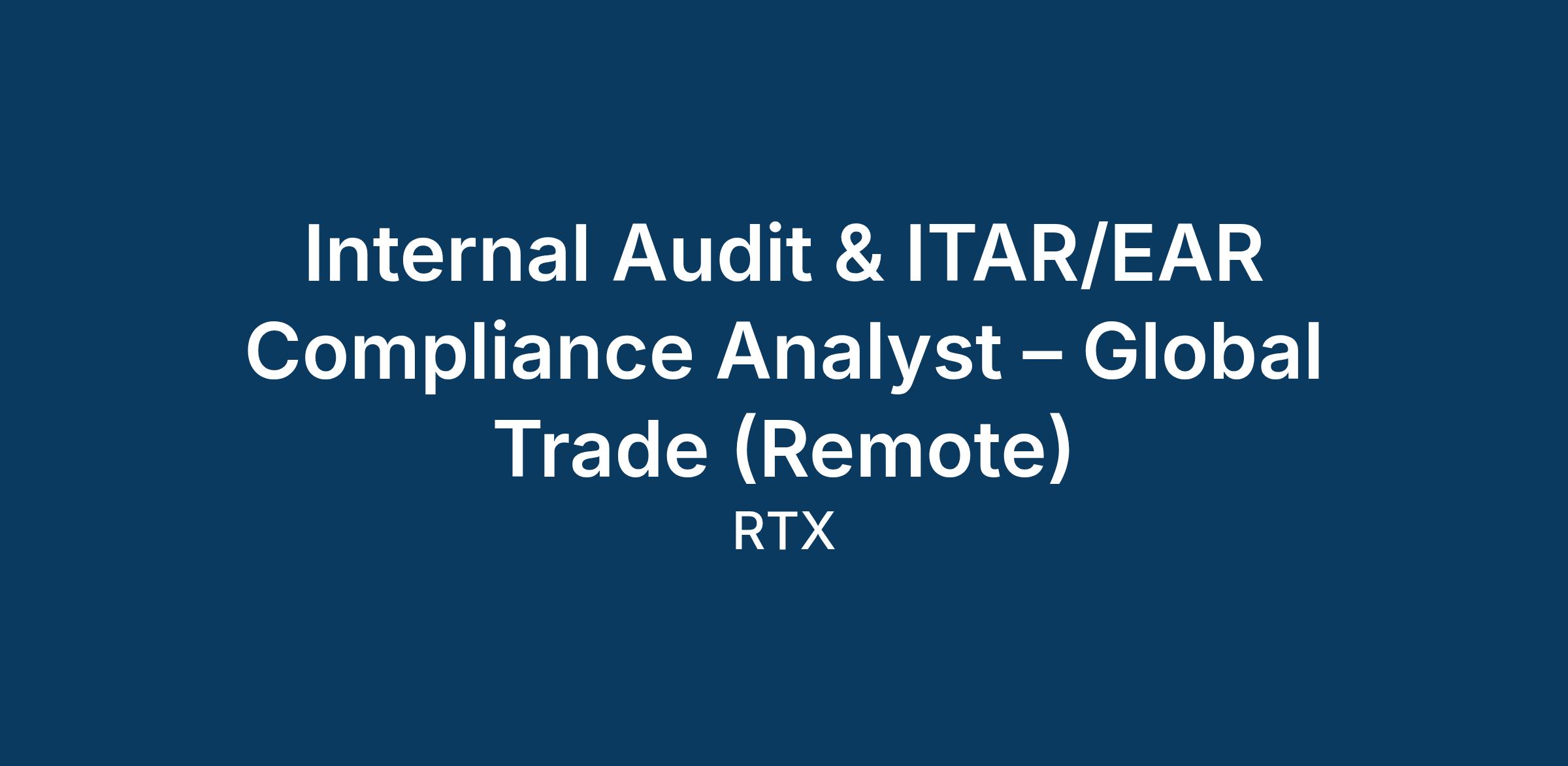 The Internal Audit & ITAR/EAR Compliance Analyst role offers a unique opportunity to join RTX's Corporate Internal Audit Team and contribute to a dynamic, fast-paced international business environment. This role is ideal if you are a motivated professional looking to expand your audit and business expertise while making a meaningful impact on the organization's operations and controls.