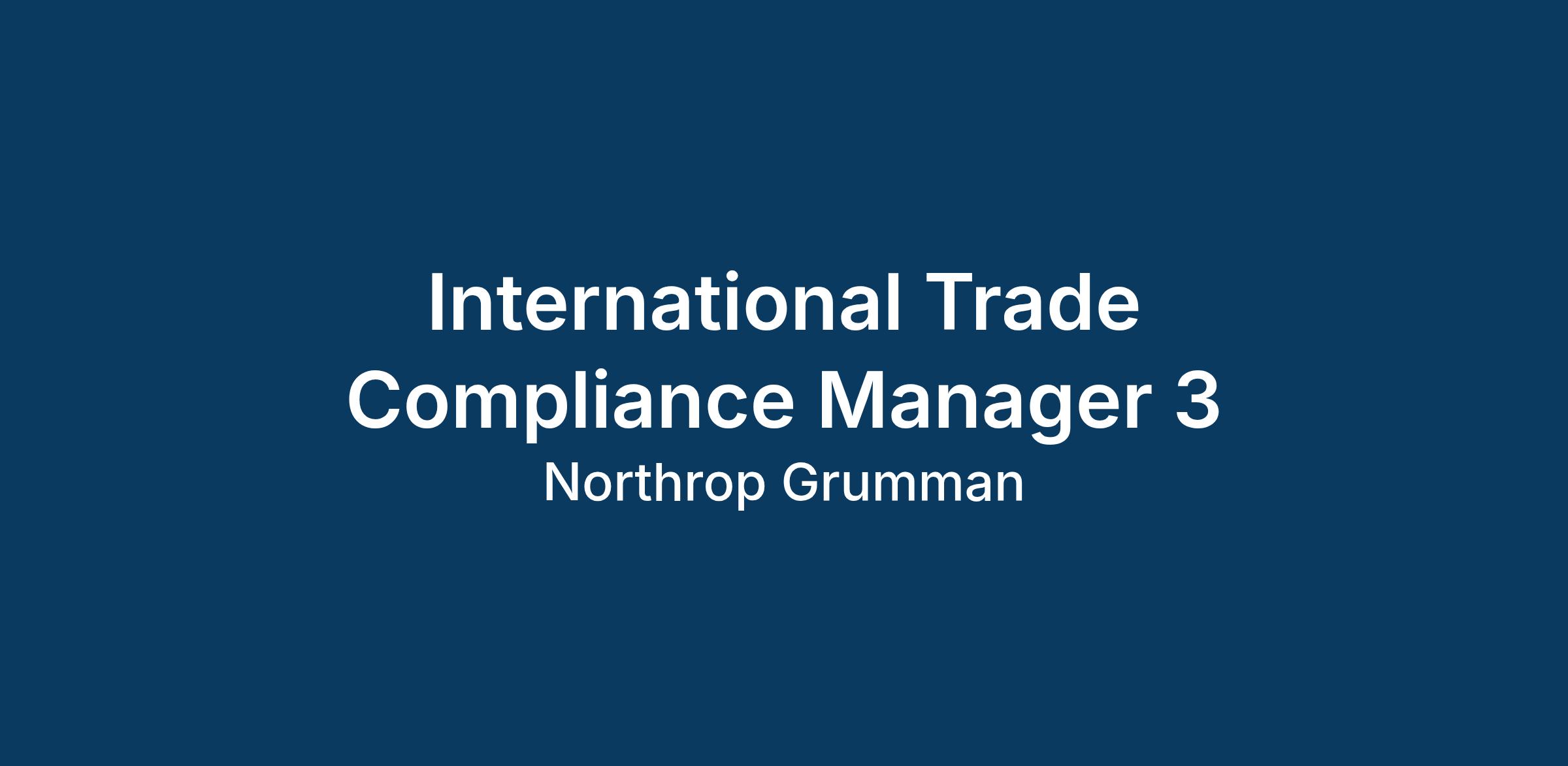 Northrop Grumman Aeronautics Systems is seeking a highly qualified International Trade Compliance Manager 3 Global Trade to join the sector Global Trade team. This position is based in El Segundo, CA, Melbourne, FL, or Falls Church, VA.