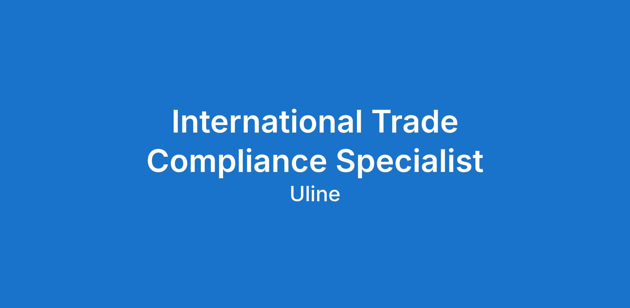 Interested in the global economy? Uline is North America's leading distributor of shipping, industrial and packaging materials, and we’re growing! As an International Trade Compliance Specialist, tackle regulatory hurdles, find tariff savings and bring Uline’s high quality products to international destinations.