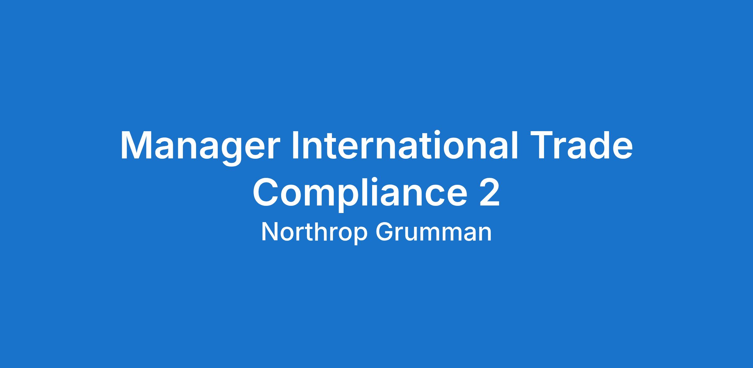 As part of the International Trade Compliance organization within Mission Systems, the Manager 2 - International Trade Compliance will support the Navigation and Cockpit Systems (NACS) Business Unit, within the Navigation, Intelligence, and Connectivity Division.