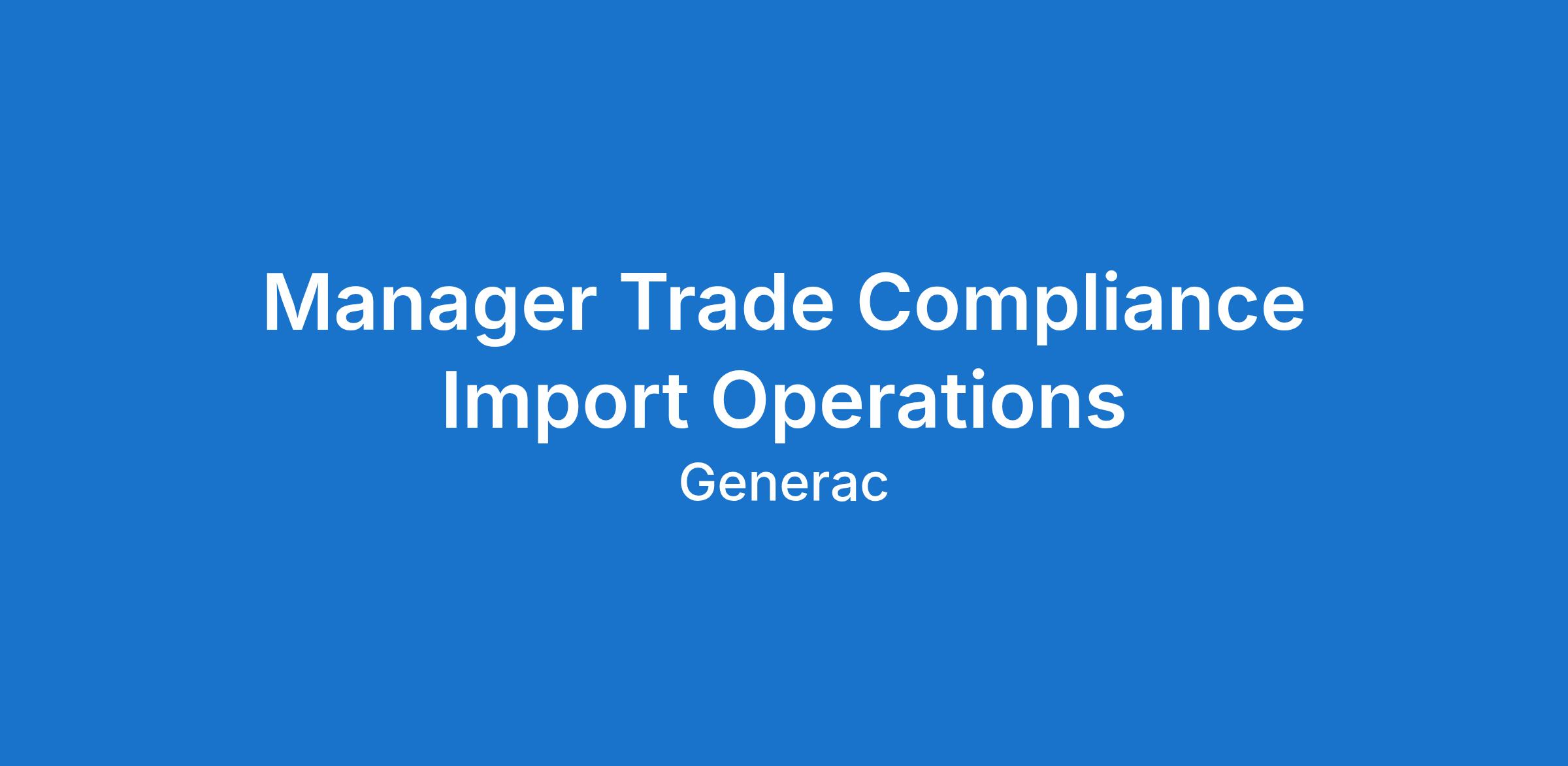 The Manager Trade Compliance is responsible for ongoing development, administration and operations of Generac Power Systems Import / Export compliance and operations in addition to facilitation of all global compliance standards.