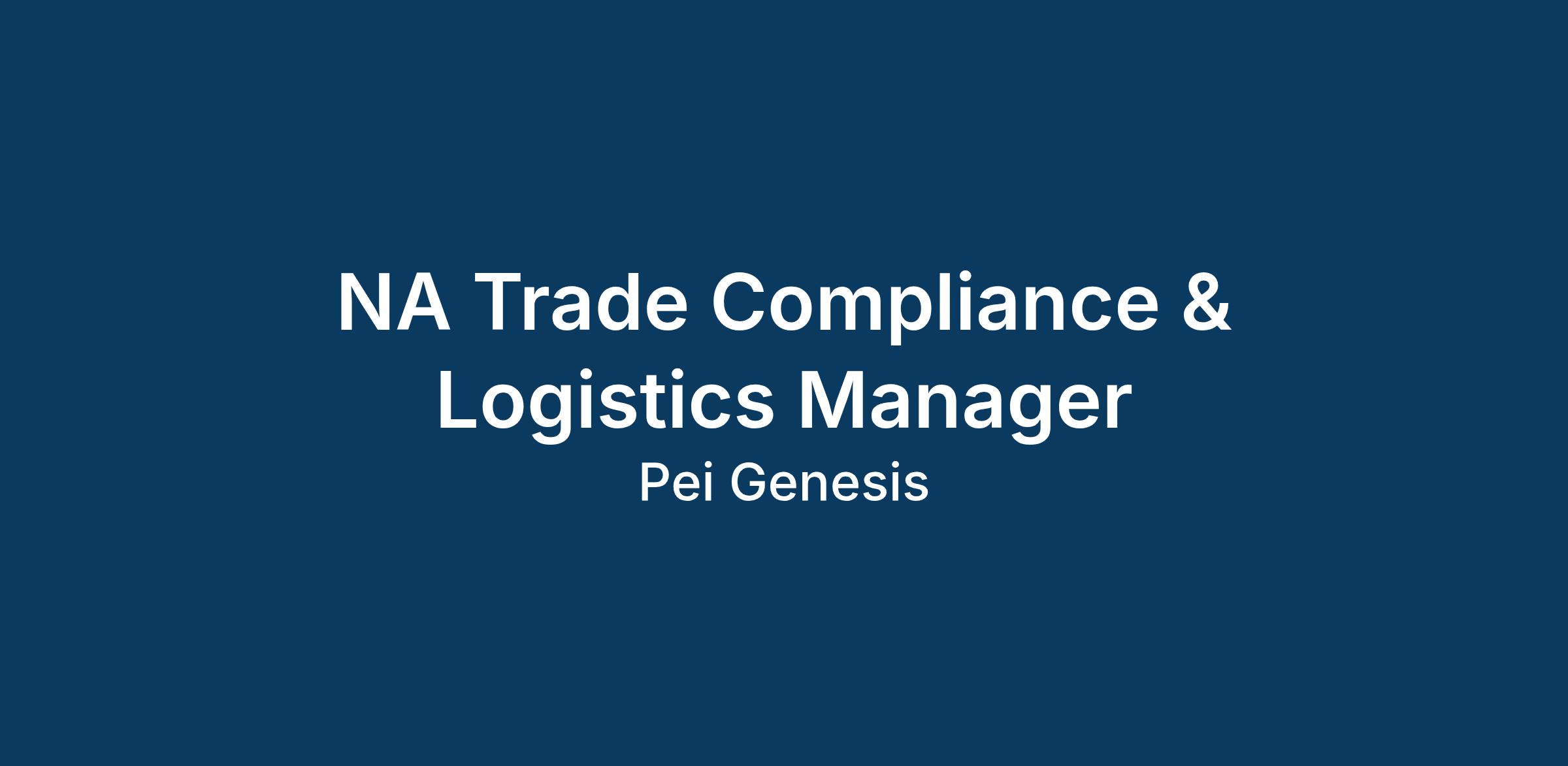 The Trade Compliance & Logistics Manager for North America will manage Trade Compliance and Logistics activities for PEI-Genesis Inc North America, while supporting globally through a cross functional team. They are responsible for the classification and clearance of import/export shipments in compliance with all respective Government regulations. Define the “how” and support the regional management to ensure adherence to regional Customs Laws and other applicable regulations as it relates to the PEI-Genesis importation and exportation of merchandise. Maintain good working relationships, cooperate, and liaise actively with Sales, Purchasing, Accounting, Order Administration Operations, and IT; other outside companies including freight forwarders, Customhouse brokers; government bodies and their representatives. Logistically this includes administering 3PL and 4PL programs, ensuring customs regulations are strictly followed, and aligning logistics decisions with PEI-Genesis’ overall business strategies and values.