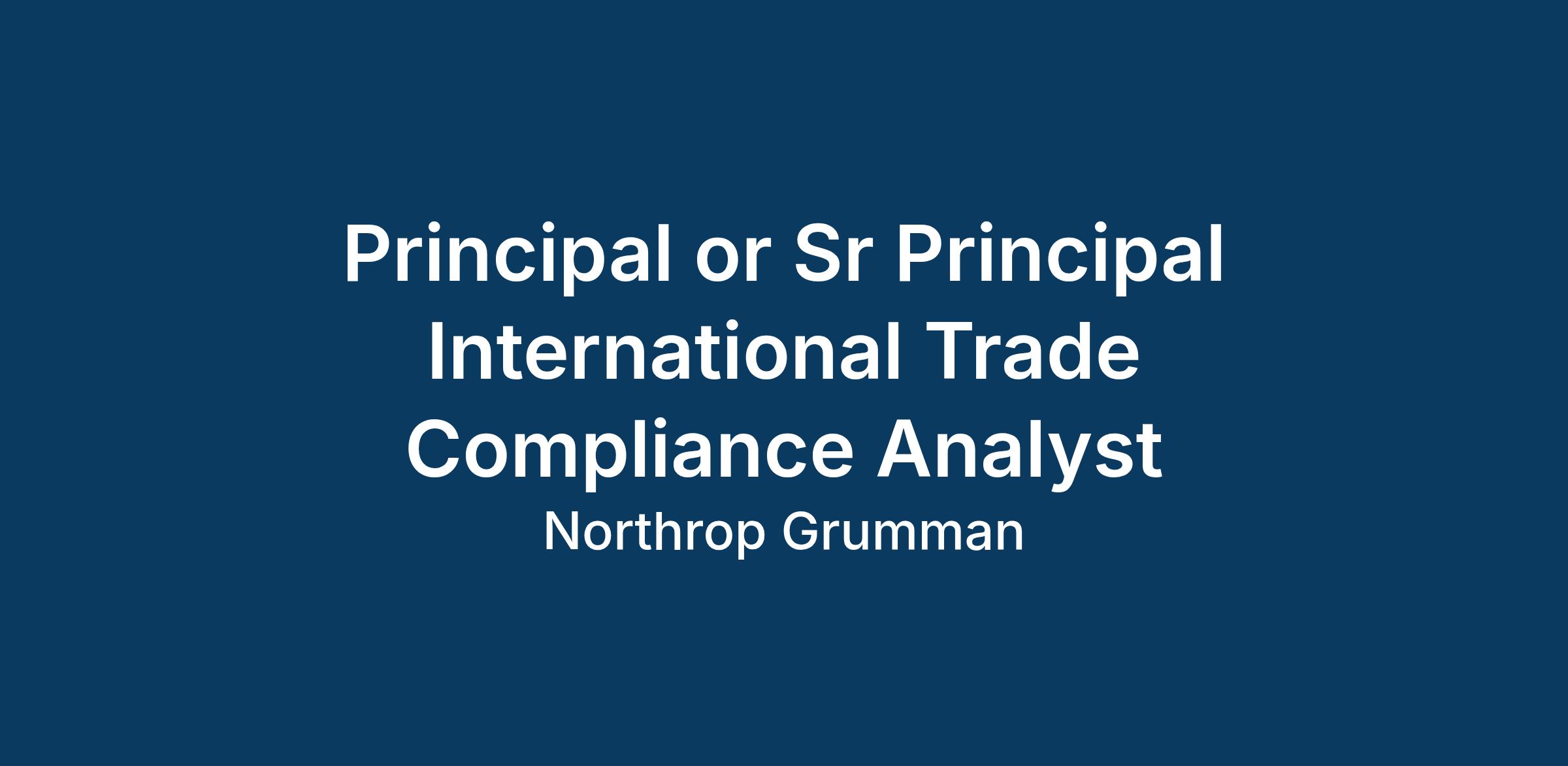 Northrop Grumman Aeronautics Systems has an opening for either a Principal International Trade Compliance Analyst (Level 3) or Senior Principal International Trade Compliance Analyst (Level 4) to join our team of qualified, diverse individuals! This position will be located in Redondo Beach, CA, but may consider candidates based in Palmdale, CA. Due to program operations and business need the position will be on-site daily. The selected candidate will support the Air Dominance F-35 team to meet the goals and objectives of the AS Business Management organization.