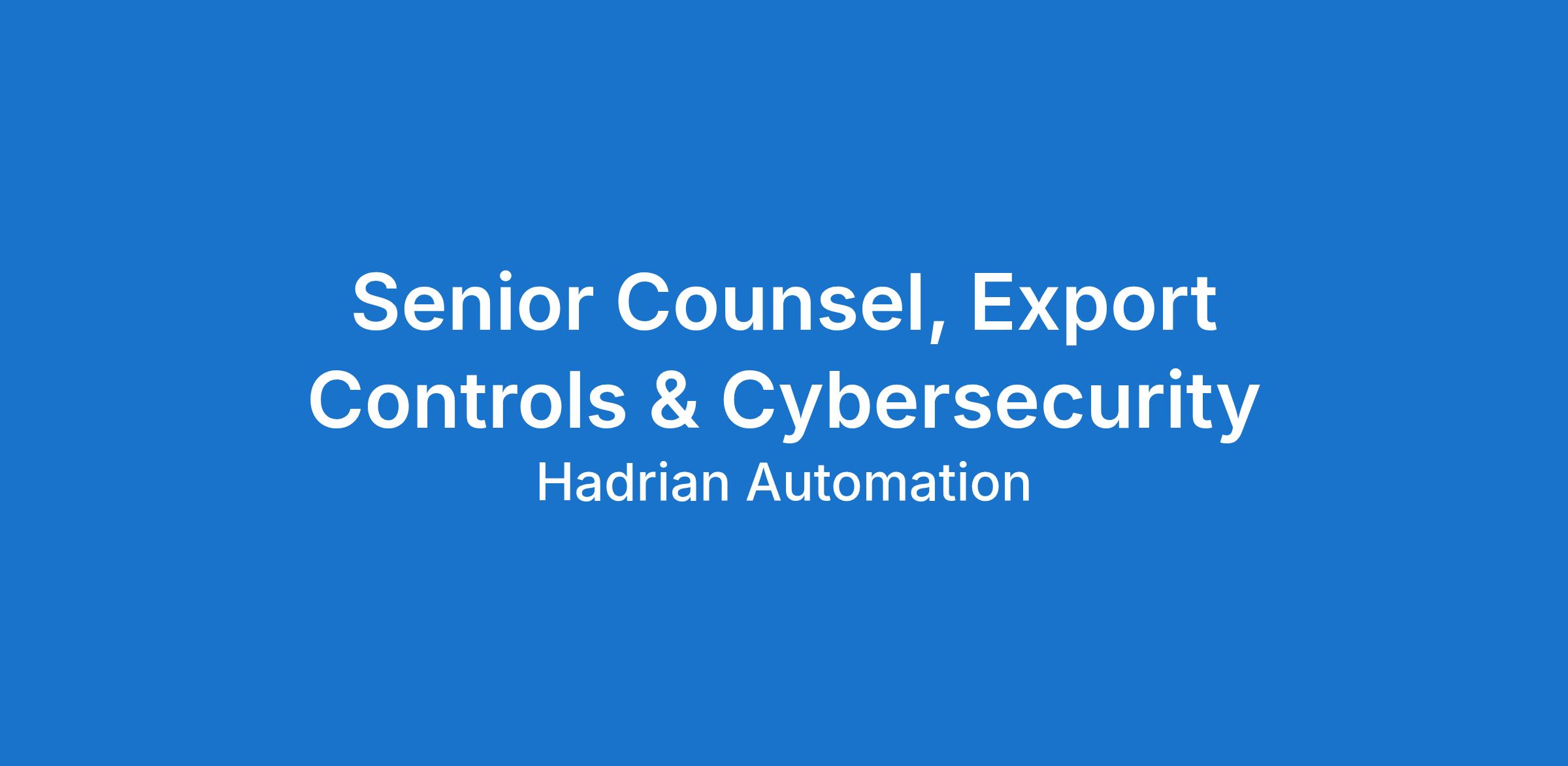 The Senior Counsel, Export Controls & Cybersecurity will serve as Hadrian’s subject-matter expert on ITAR, export controls, sanctions, and cybersecurity compliance, responsible for designing, implementing, and enforcing a scalable compliance framework across the company.