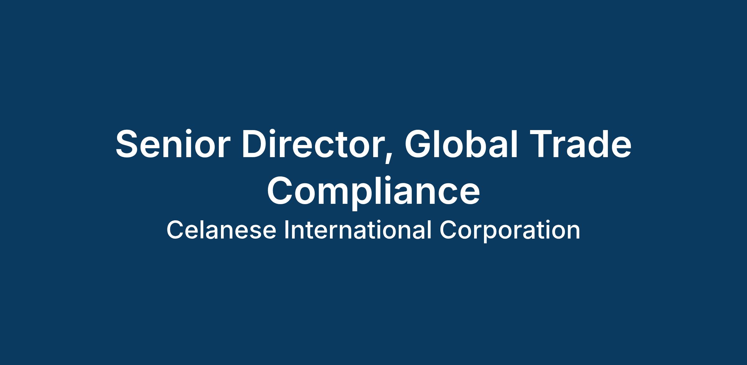 Celanese is seeking a Senior Director of Global Trade Compliance to lead a multinational team across the Americas, Europe, and Asia. This role oversees the company’s global trade compliance program, ensuring robust policies, effective controls, and consistent execution of trade activities that support business objectives.