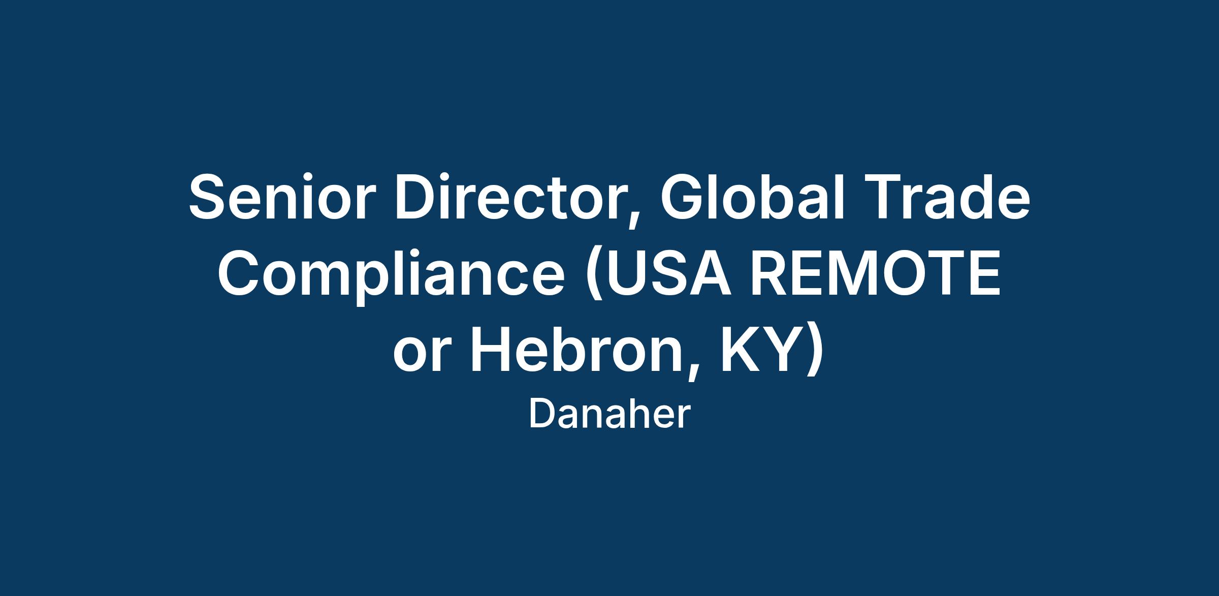 The Senior Director, Global Trade Compliance is responsible for shaping and advancing how Beckman Coulter Diagnostics approaches trade compliance, ensuring the company remains compliant in a dynamic global business environment. The role also focuses on identifying and driving strategic opportunities to optimize costs and improve operational efficiency. This leader will develop and execute the long‑term roadmap to strengthen functional capabilities, enhance compliance posture, and optimize the organizational structure supporting global trade operations. They will manage a diverse global team and serve as a hands‑on thought leader, designing programs and processes that maximize performance, mitigate risk, and support business objectives through deep expertise in import and export regulations and trade compliance best practices.