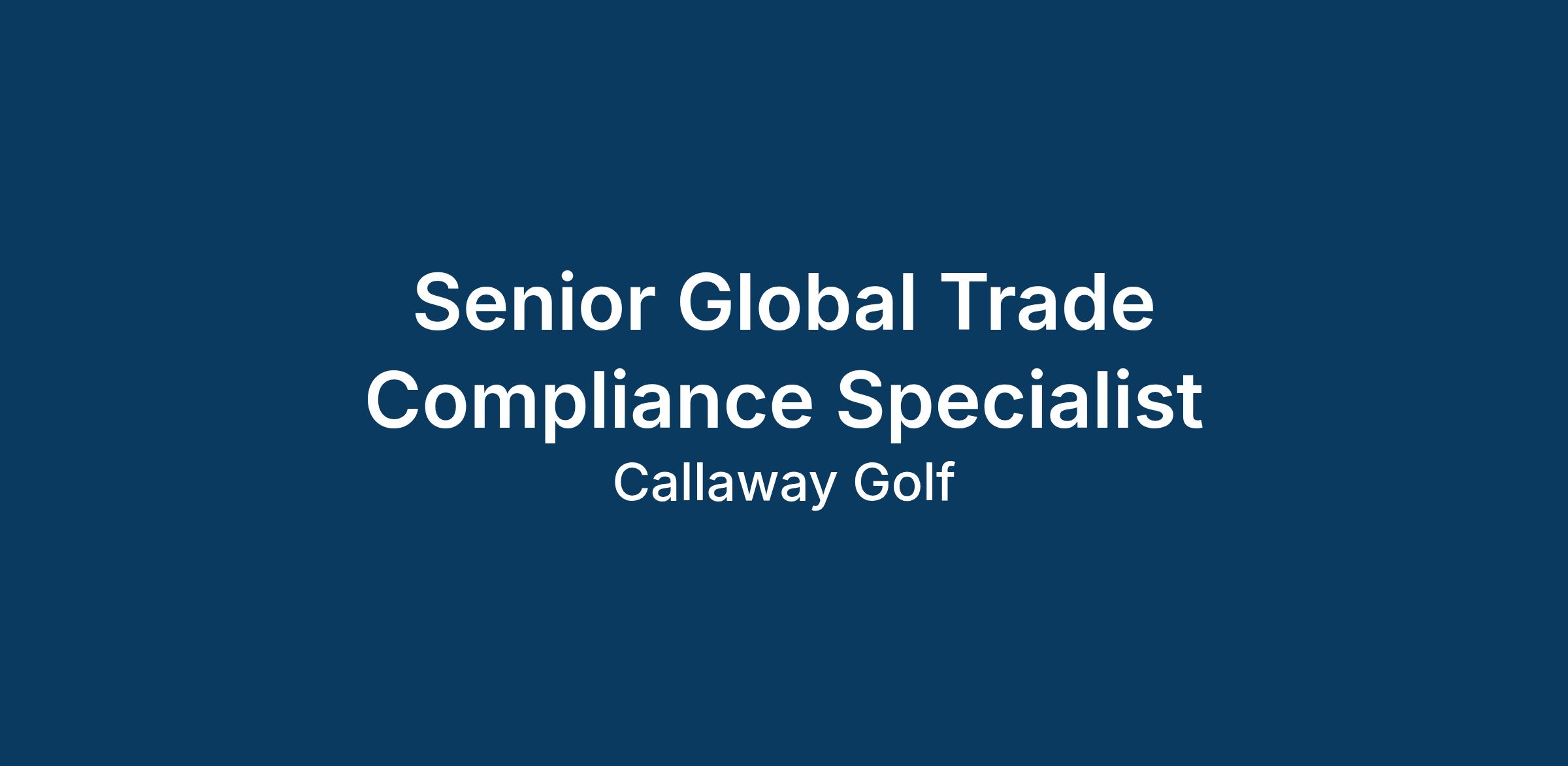 TITLE: Senior Global Trade Compliance Specialist (Reference Code: AG0429)