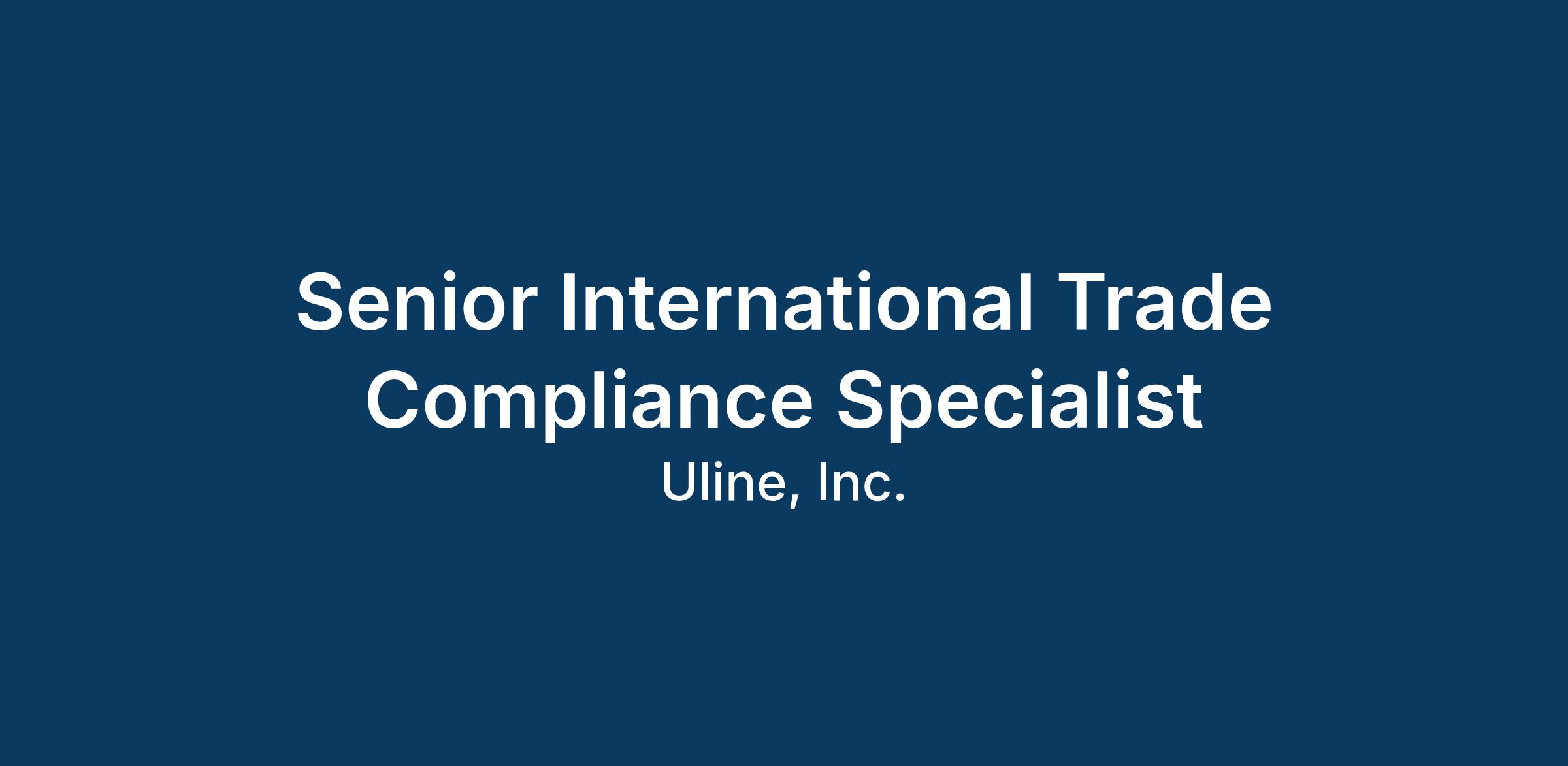 Senior International Trade Compliance Specialist Corporate Headquarters 12575 Uline Drive, Pleasant Prairie, WI 53158 Interested in the global economy? Uline is North America's leading distributor of shipping, industrial and packaging materials! As a Senior International Trade Compliance Specialist, you’ll tackle regulatory hurdles, find tariff savings and bring Uline’s high quality products to international destinations. Careers Packed with Potential. Backed by 45+ years of success, Uline offers opportunities to grow your career with stability you can count on. Position Responsibilities Review product descriptions and technical data to identify import and export classification in accordance with government standards. Create and administer internal audit processes for accurate classifications and import entries. Respond to inquiries from customs brokers, government agencies, internal and external customers and vendors for international shipments. Research and create processes related to regulatory issues, licenses and government agency requirements. Manage trade compliance programs, including follow up, process improvements, internal communication, team training and audit readiness. Minimum Requirements Bachelor's degree. 3+ years of compliance experience. Licensed Customs Broker (LCB) or Certified Classification Specialist (CCLS) a plus. Previous legal analyst experience a plus. Bilingual preferred. Benefits Complete health insurance coverage and 401(k) with 6% employer match that starts day one! Multiple bonus programs. Paid holidays and generous paid time off. Tuition Assistance Program that covers professional continuing education. Employee Perks On-site café and first-class fitness center with complimentary personal trainers. Over four miles of beautifully maintained walking trails. About Uline Uline, a family-owned company, is North America’s leading distributor of shipping, industrial, and packaging materials with over 9,800 employees across 14 locations. Uline is a drug-free workplace. All new hires must complete a pre-employment hair follicle drug screening. All positions are on-site. EEO/AA Employer/Vet/Disabled #LI-CB2 #CORP (#IN-PPOPS) #ZR-HQINTL Our employees make the difference and we are committed to offering exceptional benefits and perks! Explore Uline.jobs to learn more! Uline is North America's leading distributor of shipping, packaging and industrial supplies. Our family-owned company is committed to providing businesses with the highest quality, in-stock products and an exceptional customer experience. Uline’s dedicated team of employees make this possible, working together to ensure fast, reliable delivery and legendary customer service. Each resume submitted gets individually reviewed by our team and retained for 24 months in case a great opportunity opens for you to join our Uline family. EEO/AA Employer/Vet/Disabled Drug-Free Workplace