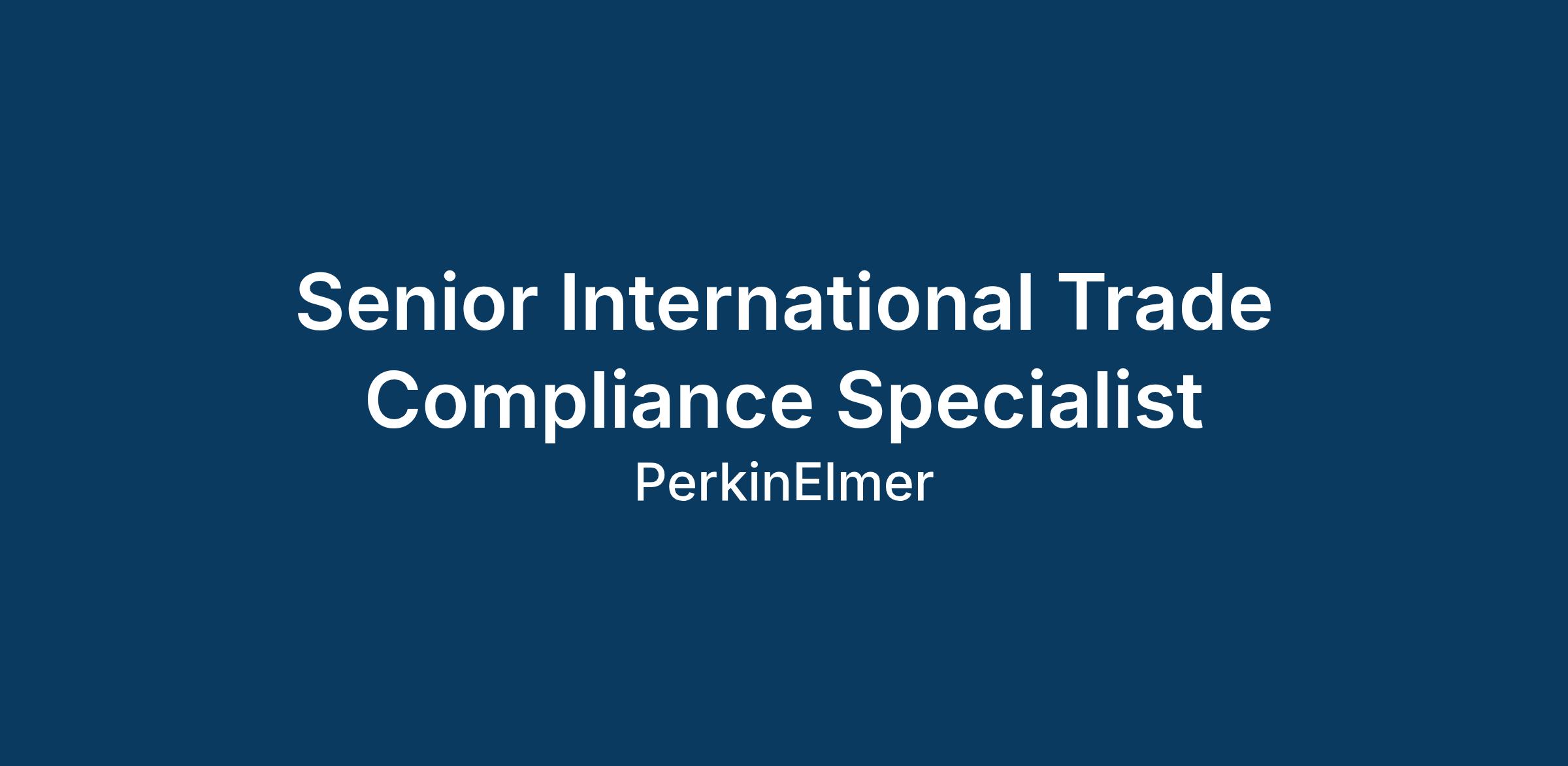 PerkinElmer is seeking an experienced and detail-oriented Senior International Trade Compliance Expert to lead and support our global trade compliance operations. This role is critical to ensuring we meet regulatory requirements, minimize risk exposure, and operate efficiently in an evolving global trade landscape—including in response to changing tariffs and geopolitical developments.