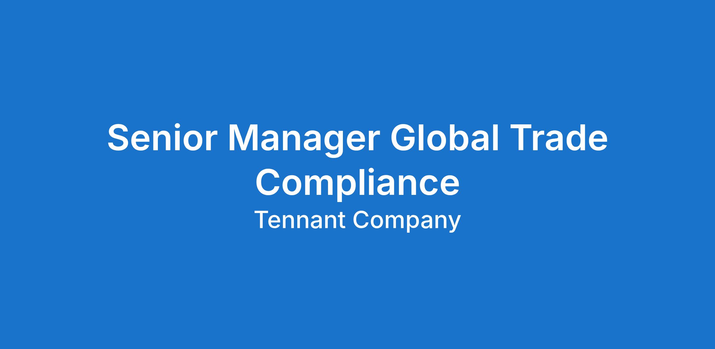 The Global Trade Compliance Senior Manager operates within a center led Global Supply Chain framework and will be responsible for all trade compliance matters and manage all trade compliance teams globally for Tennant Company, reporting directly to the Director of Global Supply Chain COE & Strategy. The position leads a team of 7 global trade compliance analysts and is on-site located at our Global Headquarters in Eden Prairie, MN with a hybrid work model.