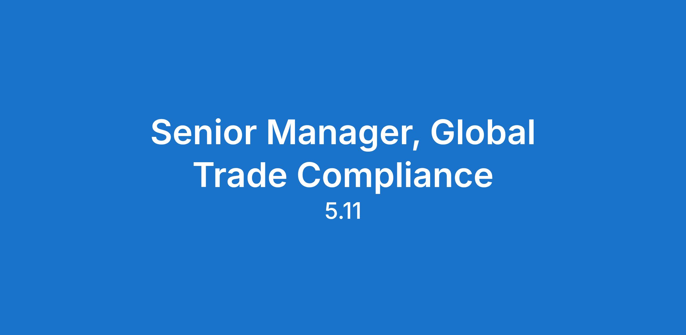 The Senior Manager, Global Trade Compliance is responsible for leading and shaping 5.11’s global trade compliance program. This role defines enterprise-wide policies, classification governance, and export control strategy to support responsible global growth while ensuring compliance with applicable regulations.