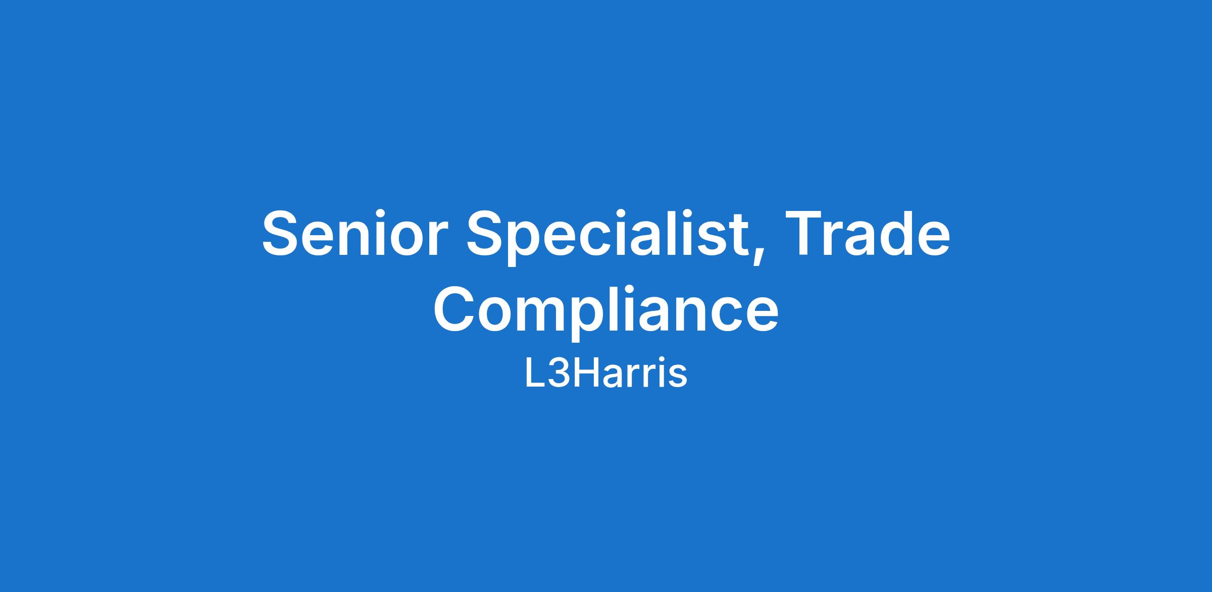 Job Title: Senior Specialist, Trade Compliance