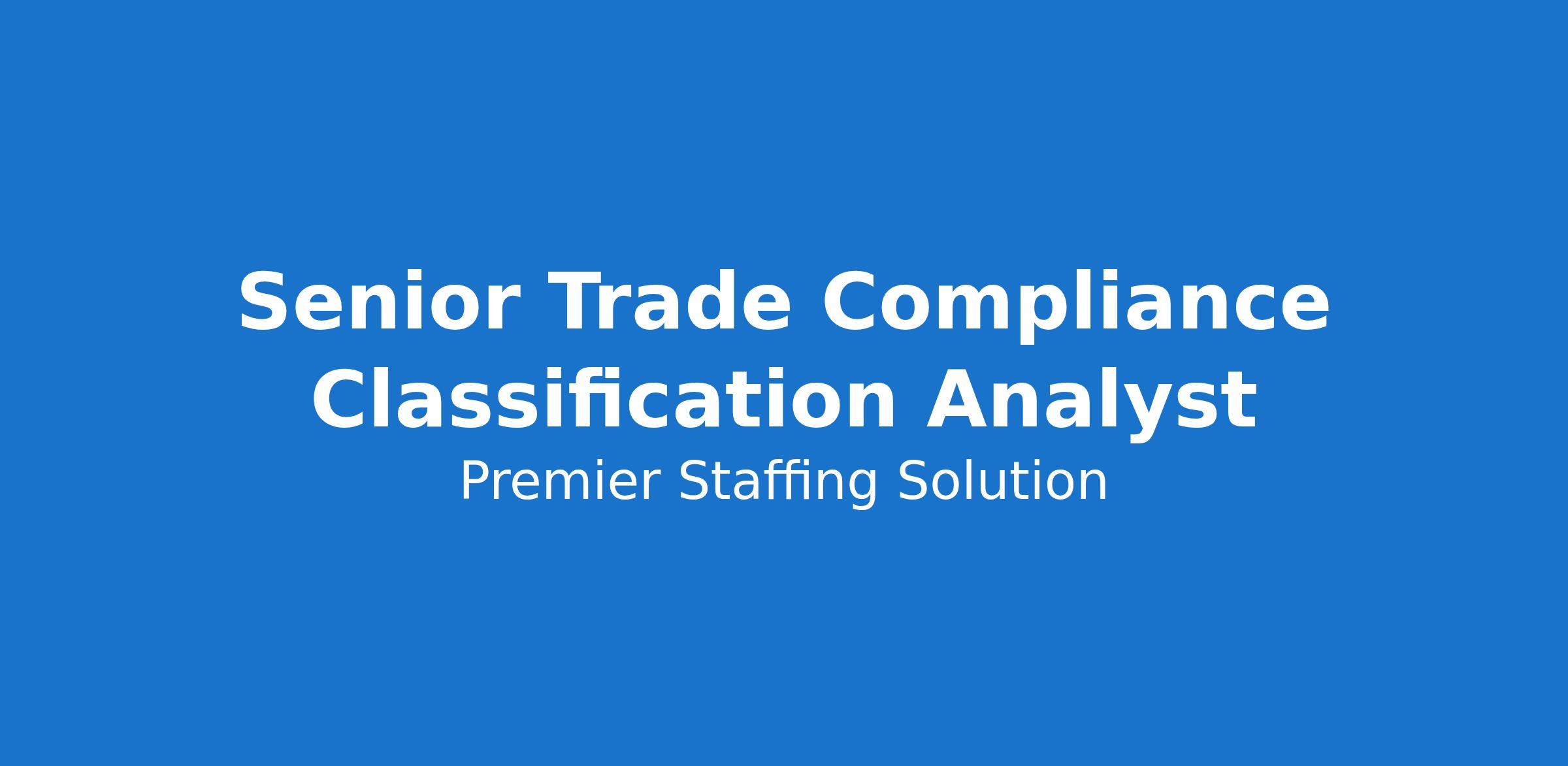 ● Trade Compliance Specifics: Prior hands-on experience with HTS/ECCN classification or international trade regulations.