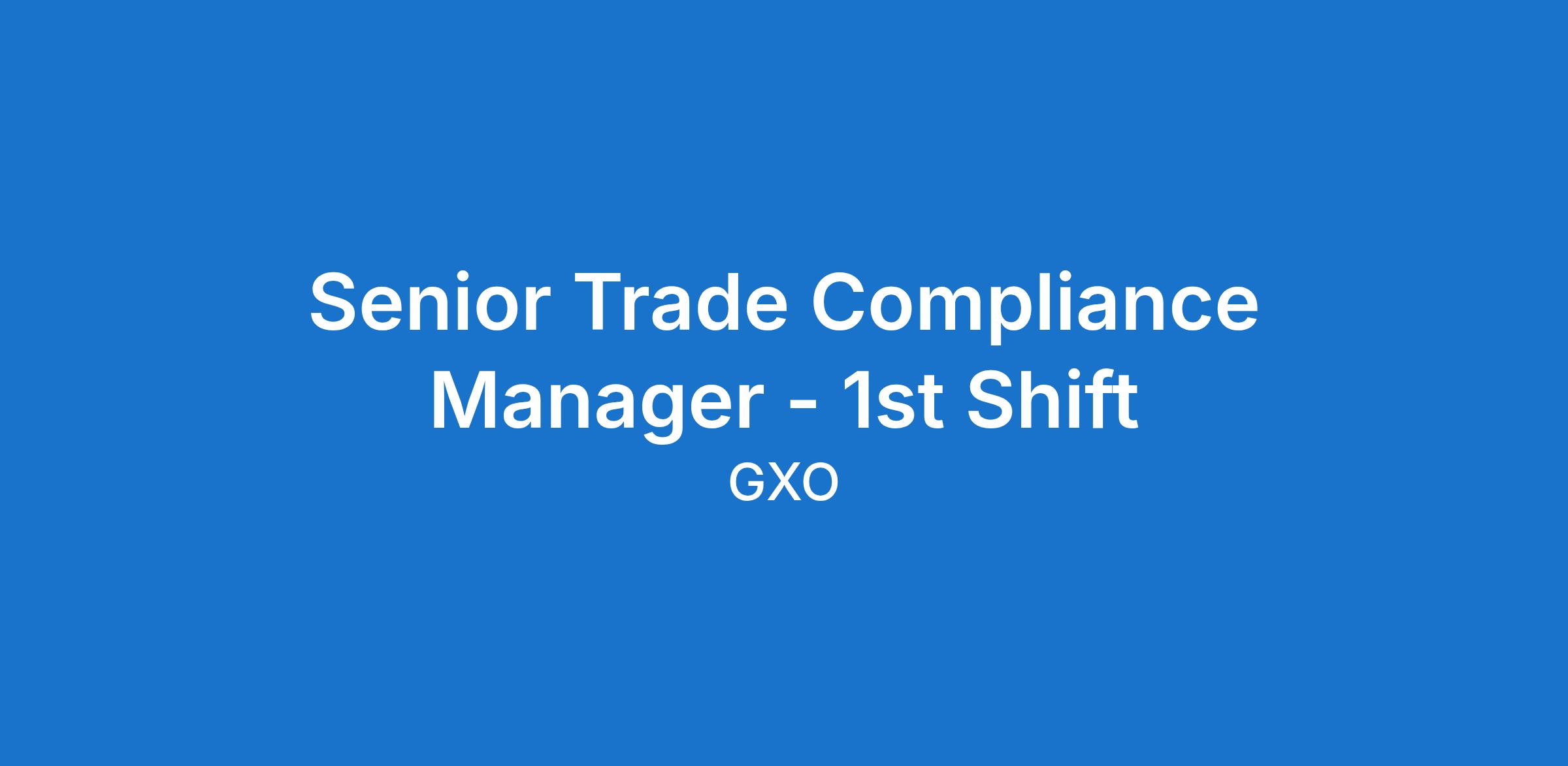 As the Senior Manager, Trade Compliance, you will develop and implement trade compliance policies and guidelines for GXO. This role will work with various teams across GXO to provide strategic guidance on GXO’s trade compliance program, including adherence to the Free Trade Zone (FTZ), the Export Administration Regulations (EAR), the International Traffic in Arms Regulations (ITAR), various economic and trade sanctions programs, and other applicable import/export laws and regulations.