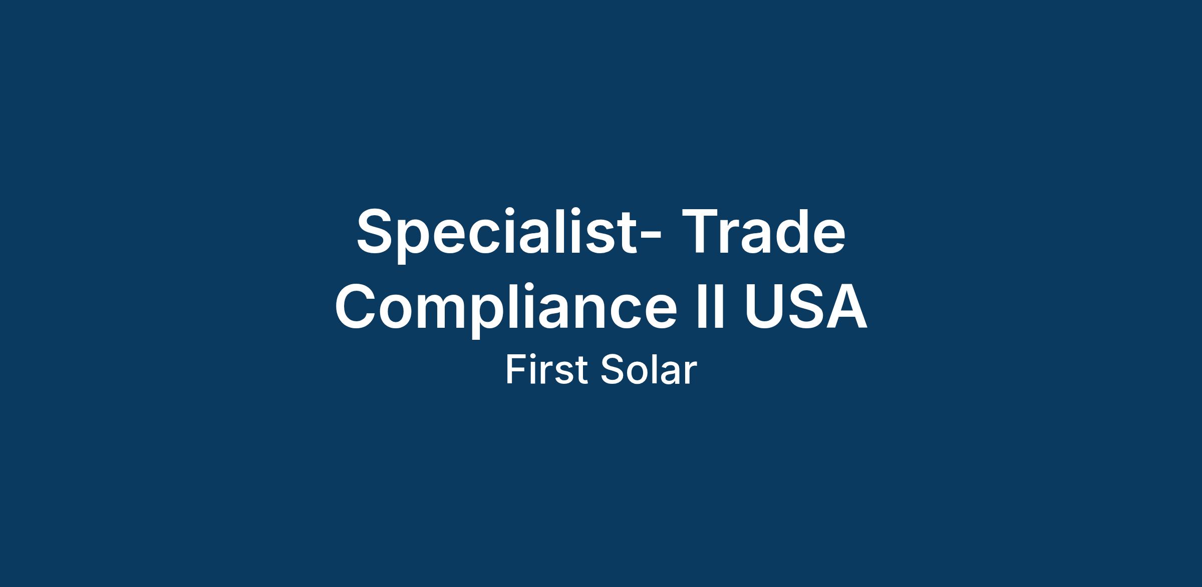 - This position reports to the Manager- Trade Compliance.