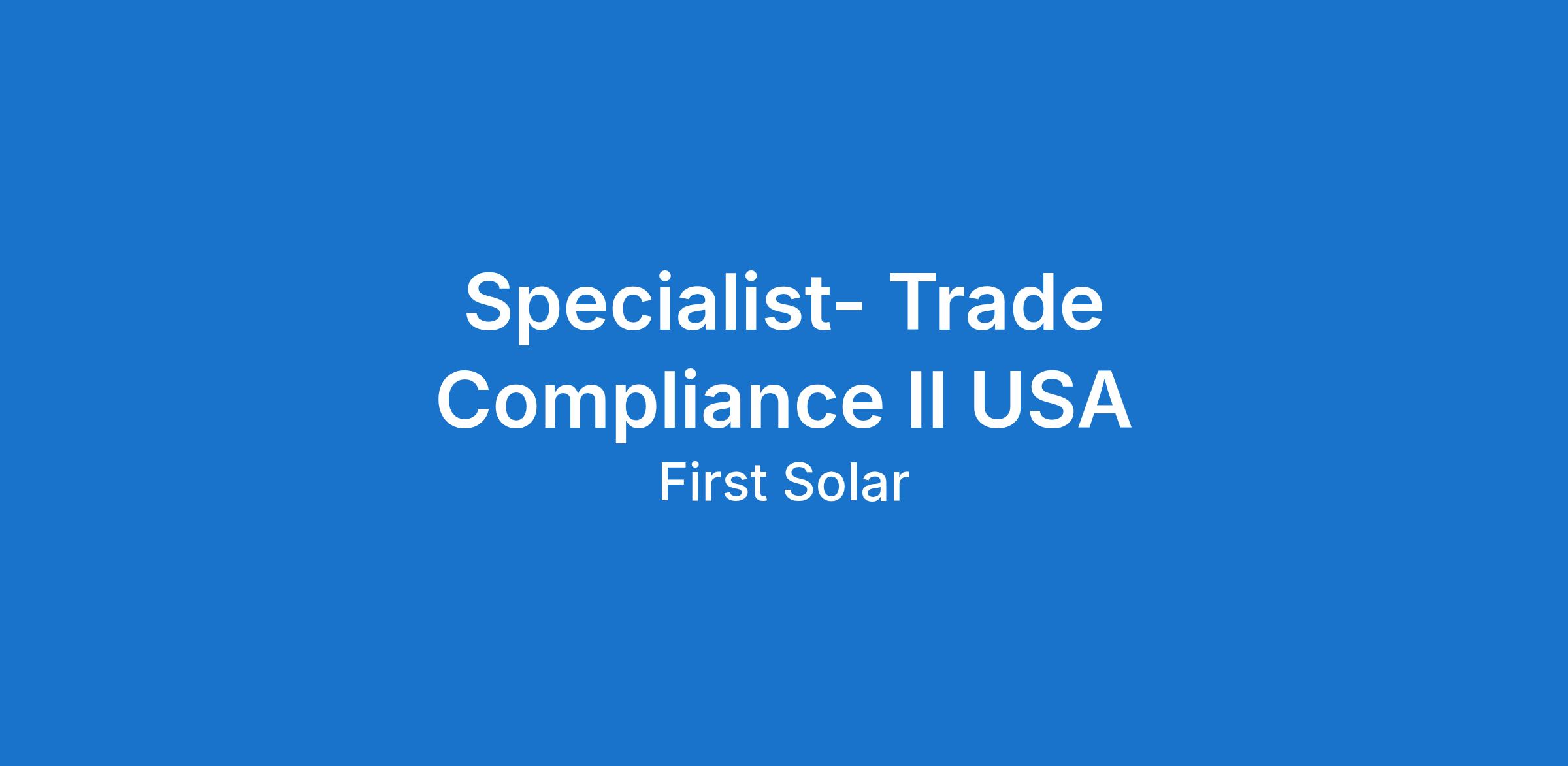 - This position reports to the Manager- Trade Compliance.