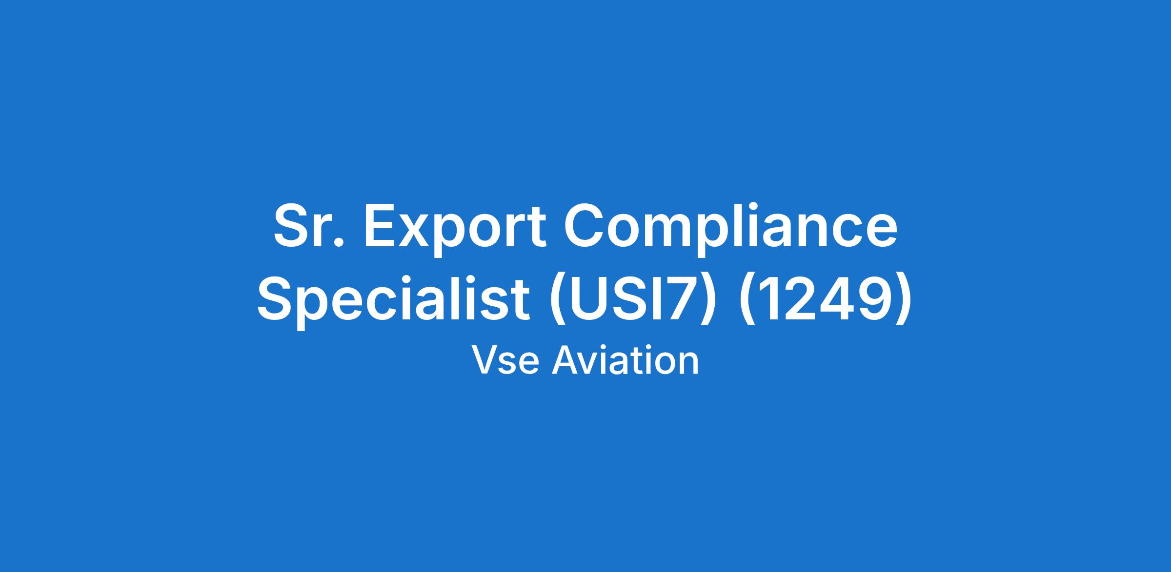 DescriptionSUMMARY: The Senior Export Compliance Specialist enhances VSE Aviation’s Trade Compliance Program by executing advanced export control assessments, complex classifications, and regulatory analysis. Serving as a subject matter expert in the EAR, and global export requirements, this role exercises greater regulatory judgment and autonomy than the Compliance Specialist.