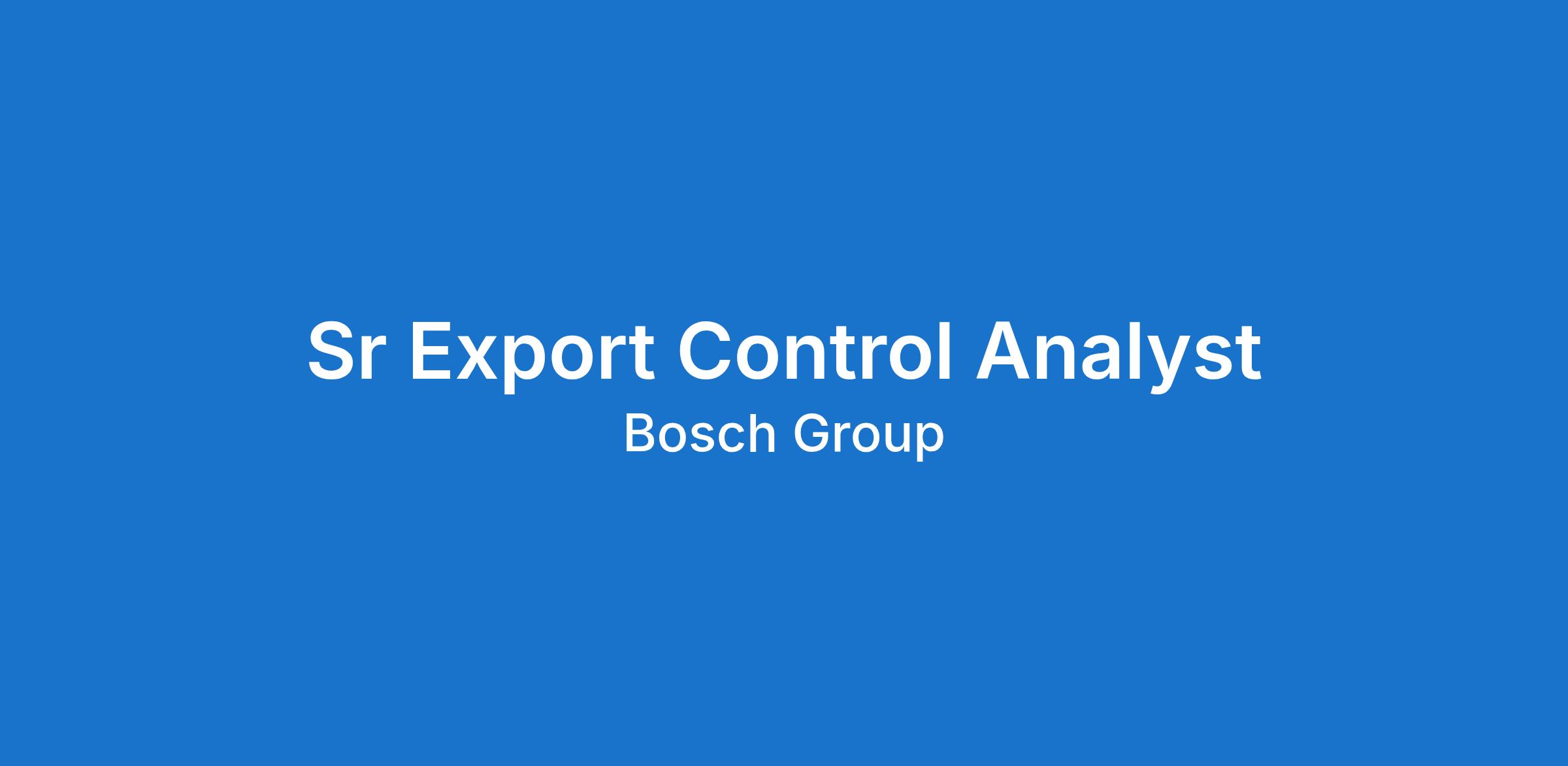 As a Sr Export Control Analyst, you will be part of a team which provides authoritative guidance on national and international regulations, including the ITAR and EAR, ensuring Bosch's compliance with them. As part of our global Export Control team, you will further develop global standards and guidelines in U.S. export controls law in strong collaboration with your international colleagues.