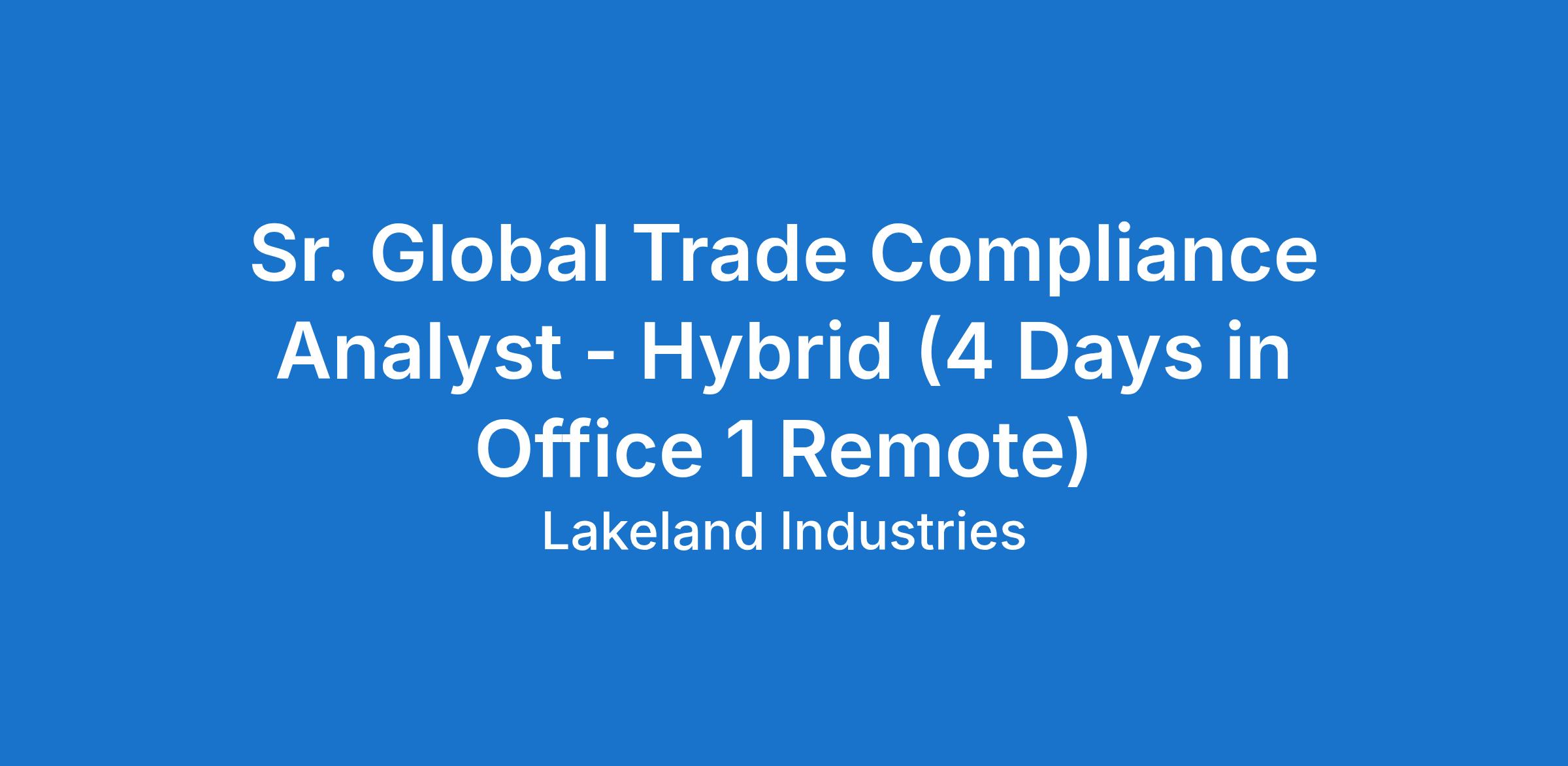 Join us at Lakeland Industries, a leading innovator in the PPE sector. We pride ourselves on delivering exceptional products and services that enhance our customers' experiences. Our commitment to excellence, teamwork, and customer satisfaction makes us an inspiring place to work. We are currently seeking a dedicated Sr. Global Trade Compliance Analyst to drive our compliance and brokerage processes to new heights.