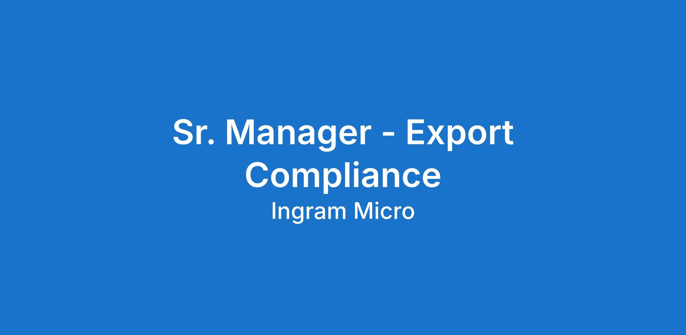 This role is responsible for the development, management and implementation of compliance processes, procedures and system interfaces with Ingram Micro’s ERP and WMS. This position also manages day to day operations and projects, ensuring programs adhere to all US export control laws and regulations.