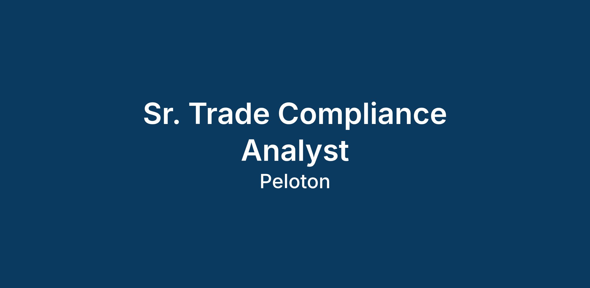 As a Trade Compliance Senior Analyst, you will play an integral part in executing Peloton’s Customs policies and procedures, with a primary focus on compliance with US Customs and Border Protection (CBP) and Canada Border Services Agency (CBSA) regulations. Reporting to Peloton’s Senior Manager, Trade Compliance, you will oversee the Customs brokers of Peloton’s wholly-owned subsidiary, Precor Inc, ensuring timely, accurate and compliant payments of import tariffs, and generally maintain and strengthen Precor’s “reasonable care” controls.