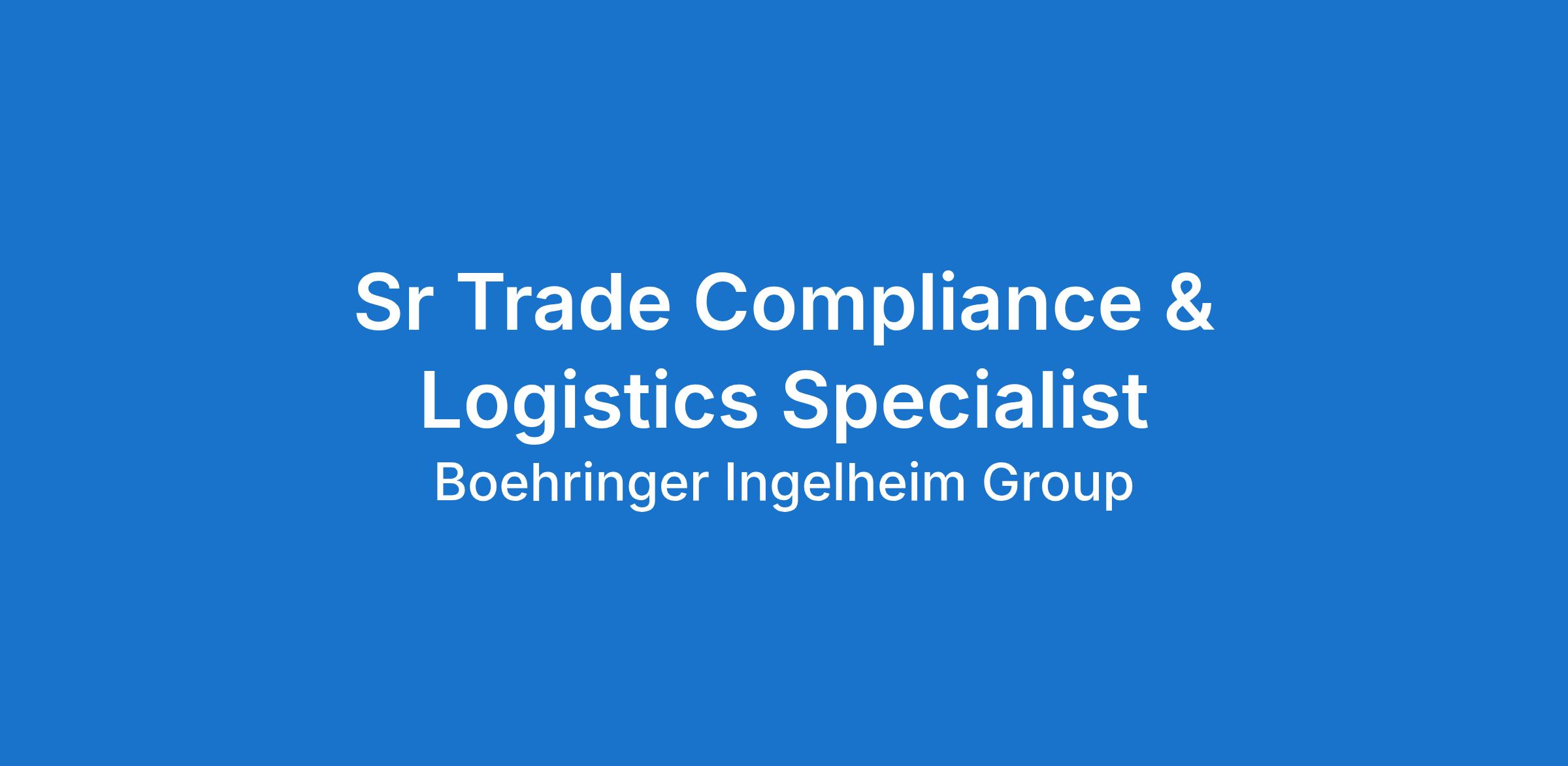 The Senior Trade Compliance & Logistics is responsible for the development and management of import processes, policies and procedures for the Ridgefield business. Providing guidance to employees and maintaining accurate and complete records. Â Ensuring compliance with US Customs Regulations. This is a critical role in protecting Boehringer Ingelheim against Custom's fines and penalties and the ability to import goods into the US.Â
