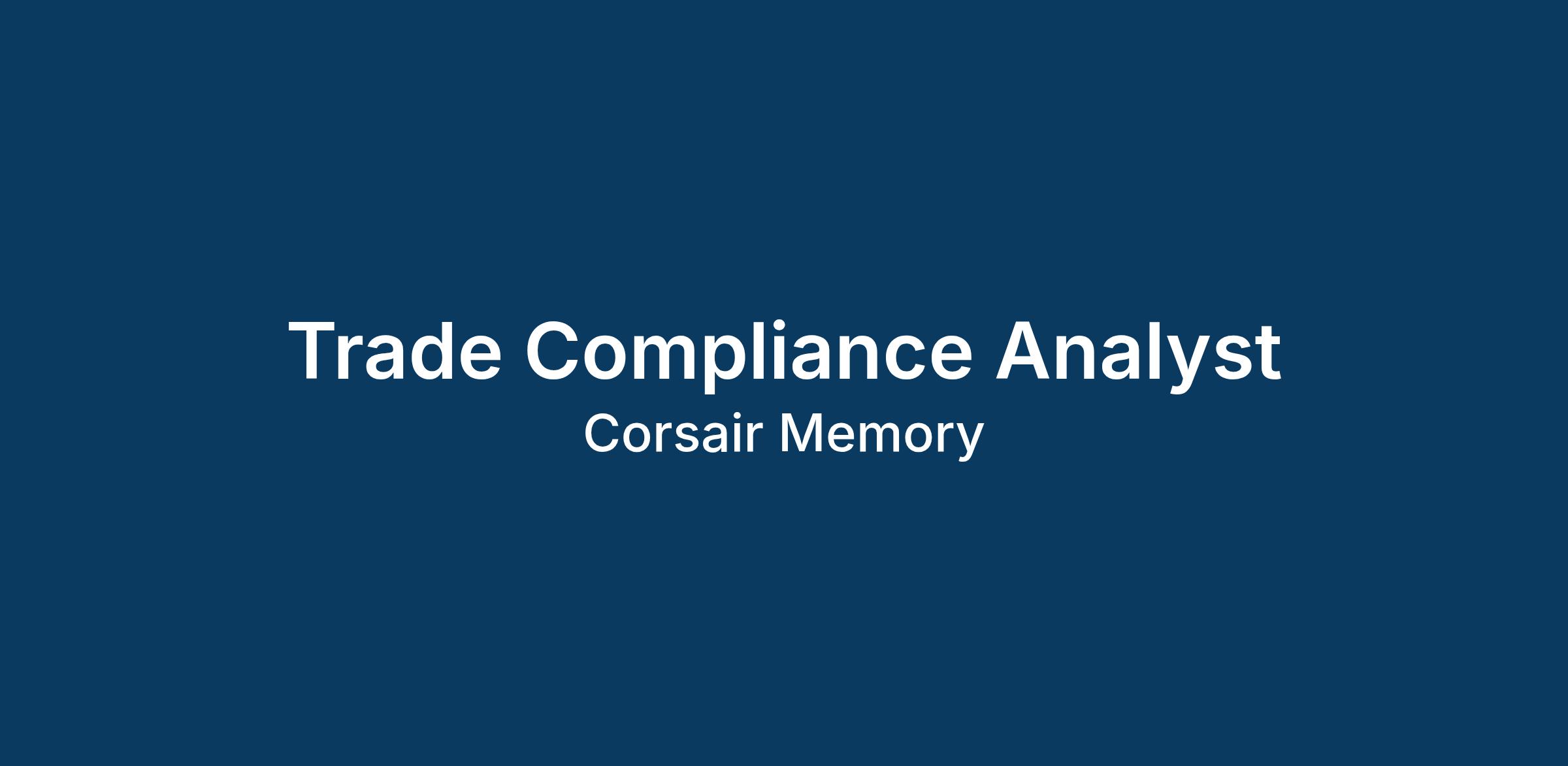 We are seeking a highly motivated and detail-oriented Trade Compliance Analyst to support the oversight of Corsairβs trade compliance program. The position involves analyzing and auditing entry data to ensure accuracy and compliance. Weβre seeking for someone with strong Excel skills, an analytical mindset, and experience in trade and logistics.Β