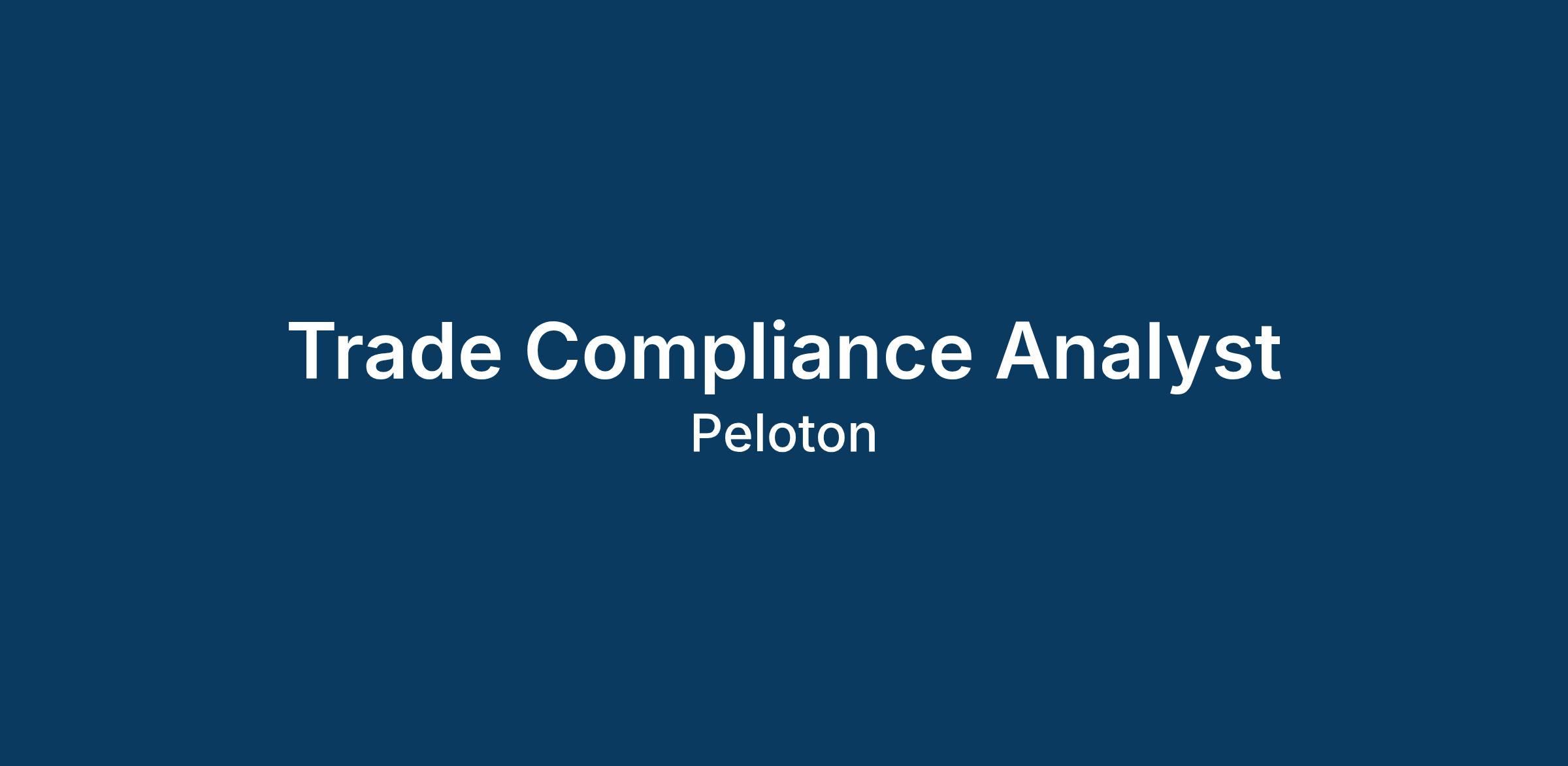 As a Trade Compliance Analyst, you will play an integral part in executing Peloton’s Customs policies and procedures, with a primary focus on compliance with US Customs and Border Protection (CBP) and Canada Border Services Agency (CBSA) regulations. Reporting to Peloton’s Senior Manager, Trade Compliance, you will oversee Peloton’s Customs brokers, ensure timely, accurate & compliant payments of import tariffs, and generally maintain & strengthen Peloton’s “reasonable care” controls.
