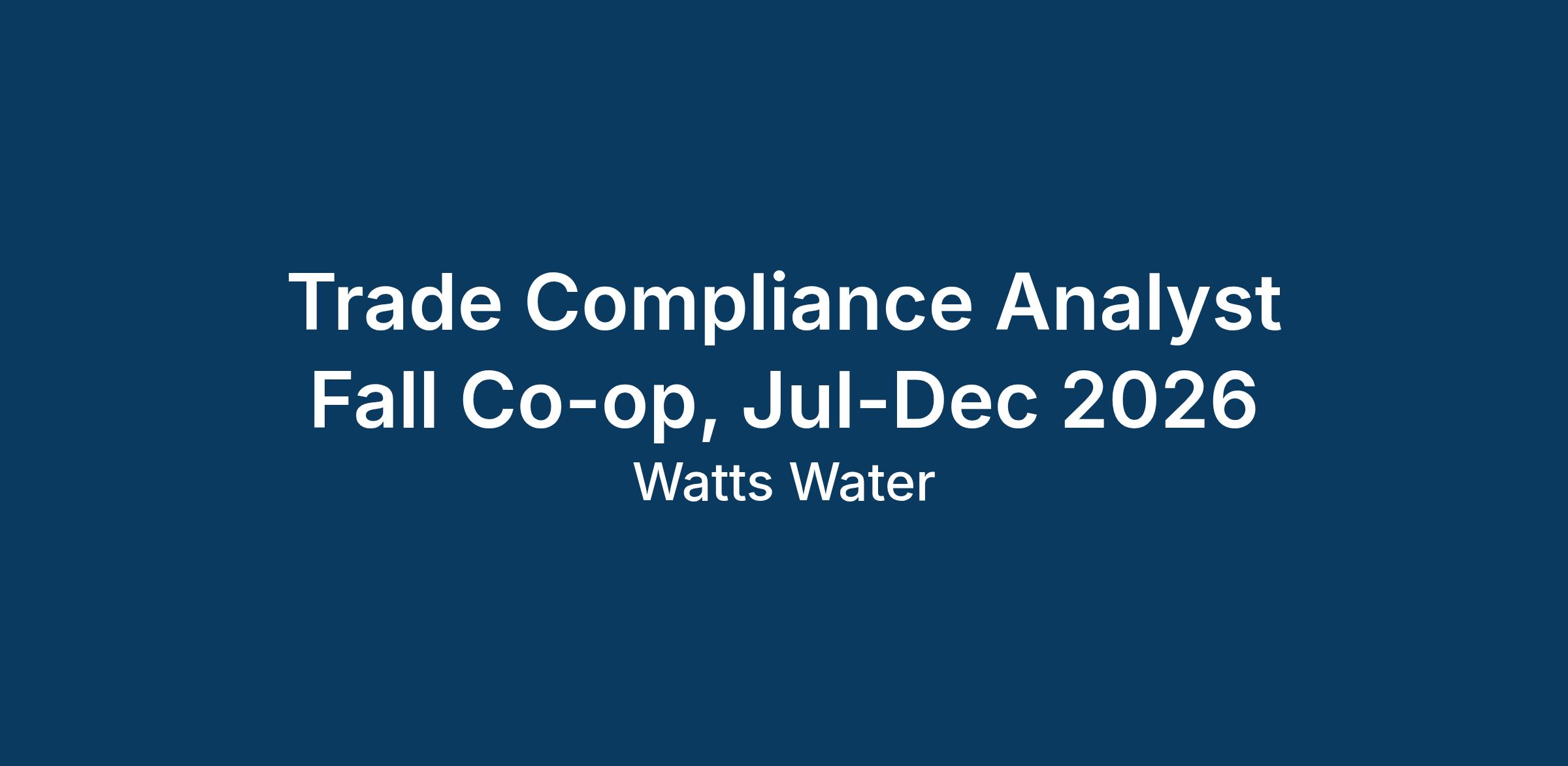 Trade Compliance Analyst Fall Co-op, Jul-Dec 2026