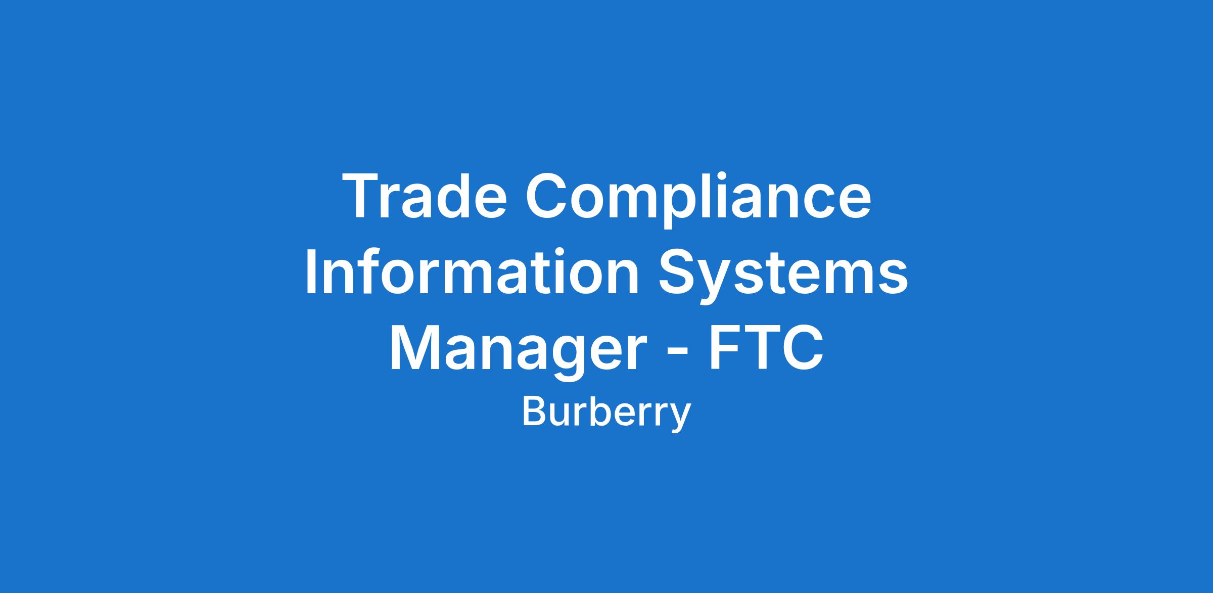 Trade Compliance Information Systems Manager - FTC